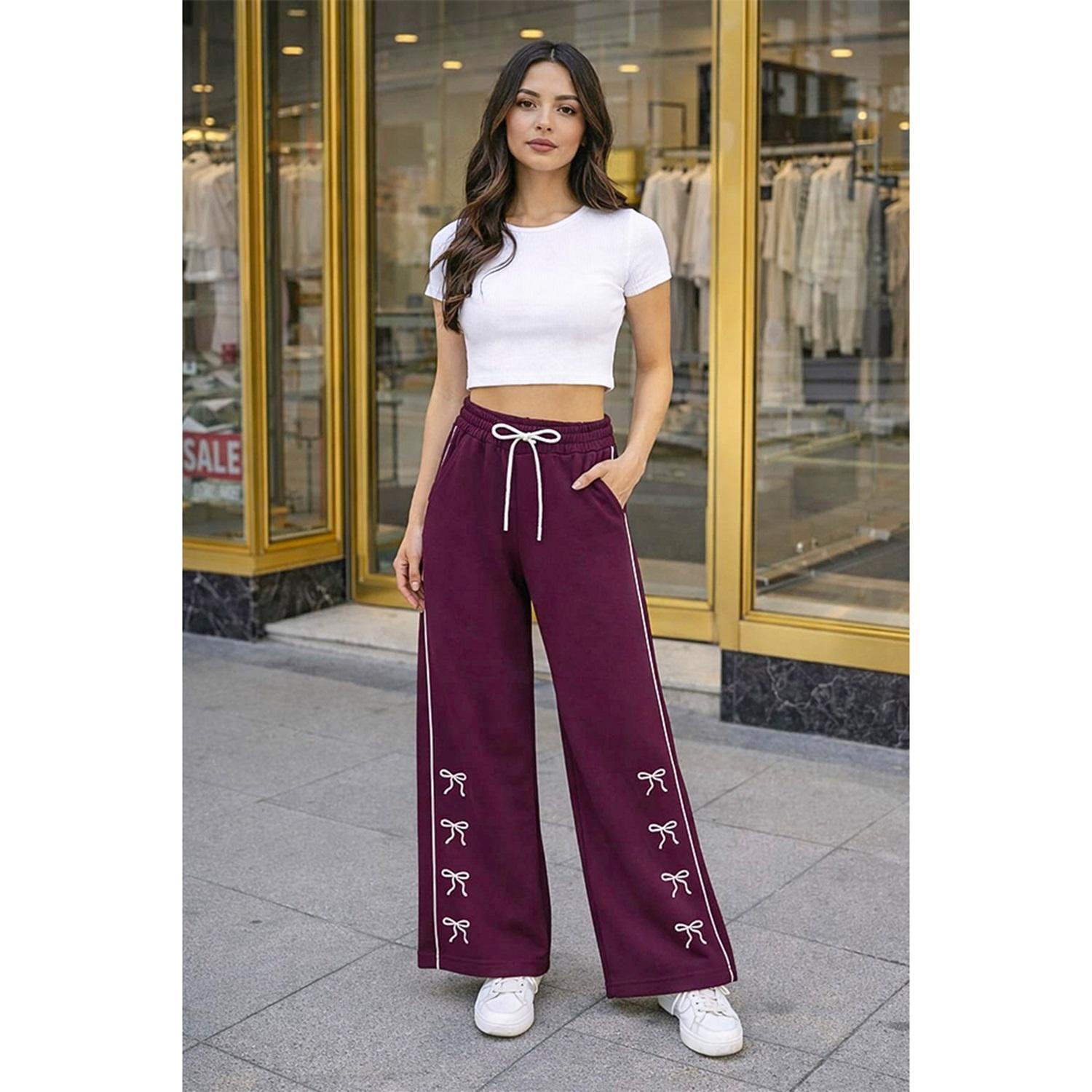 Elit Lıfe 153 Bayan Elmas Kumaş Bol Paça Biyeli Eşofman Alt S-2XL