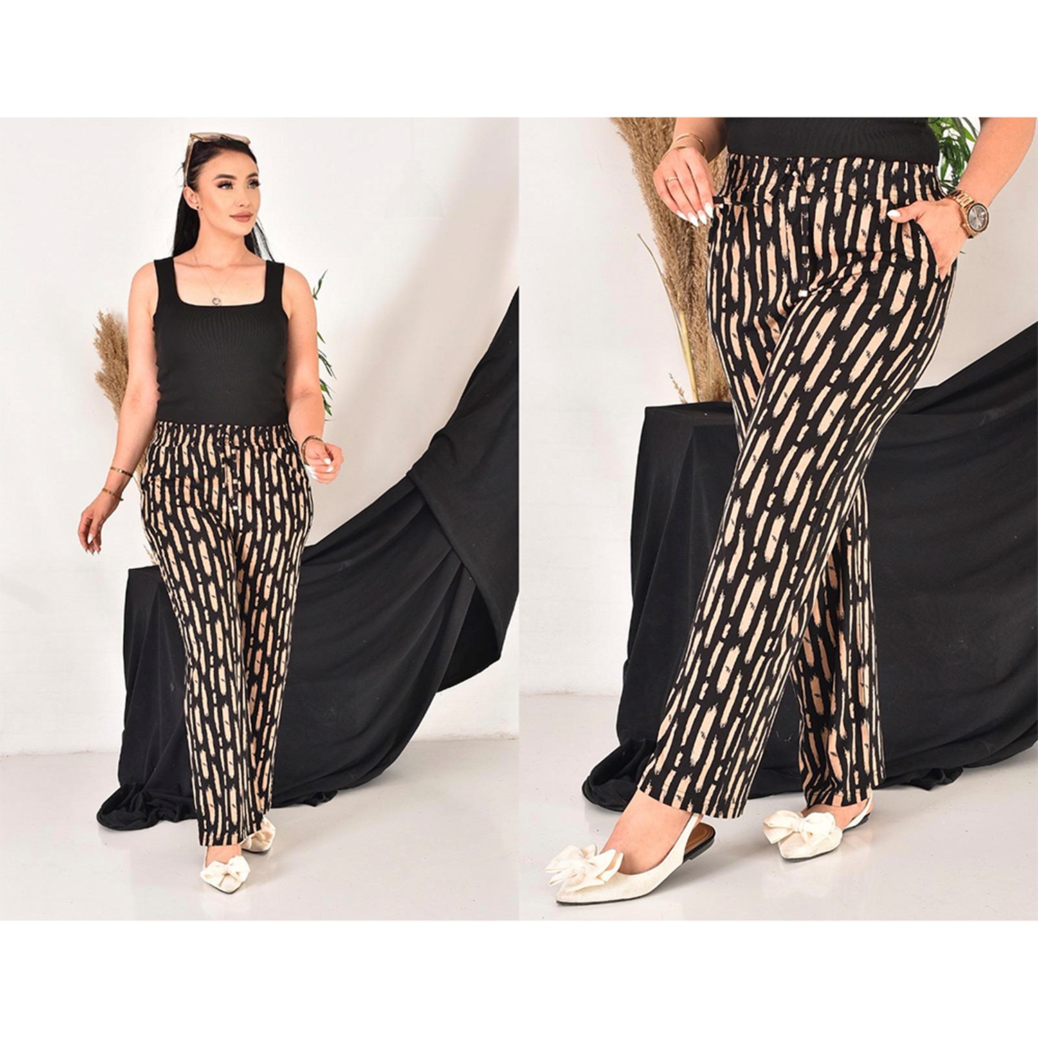 Elit Lıfe 93 Bayan Reaktif Viskon Desenli Bol Paça Cepli Tek Alt S-2XL