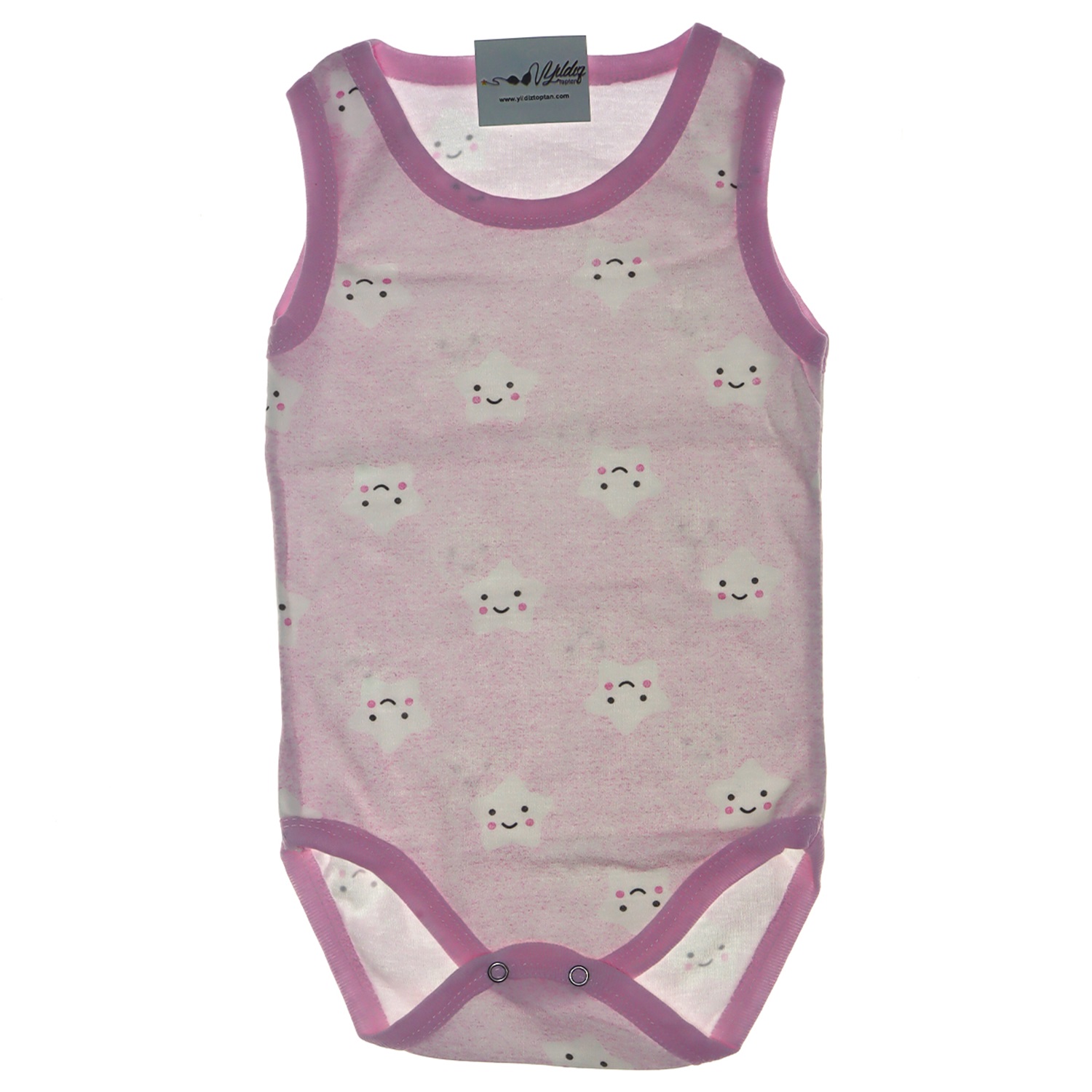 201 Yıldızlı Gülen Yüz Baskılı Bebe Askılı Çıtçıtlı Badi 3-6-9 Ay