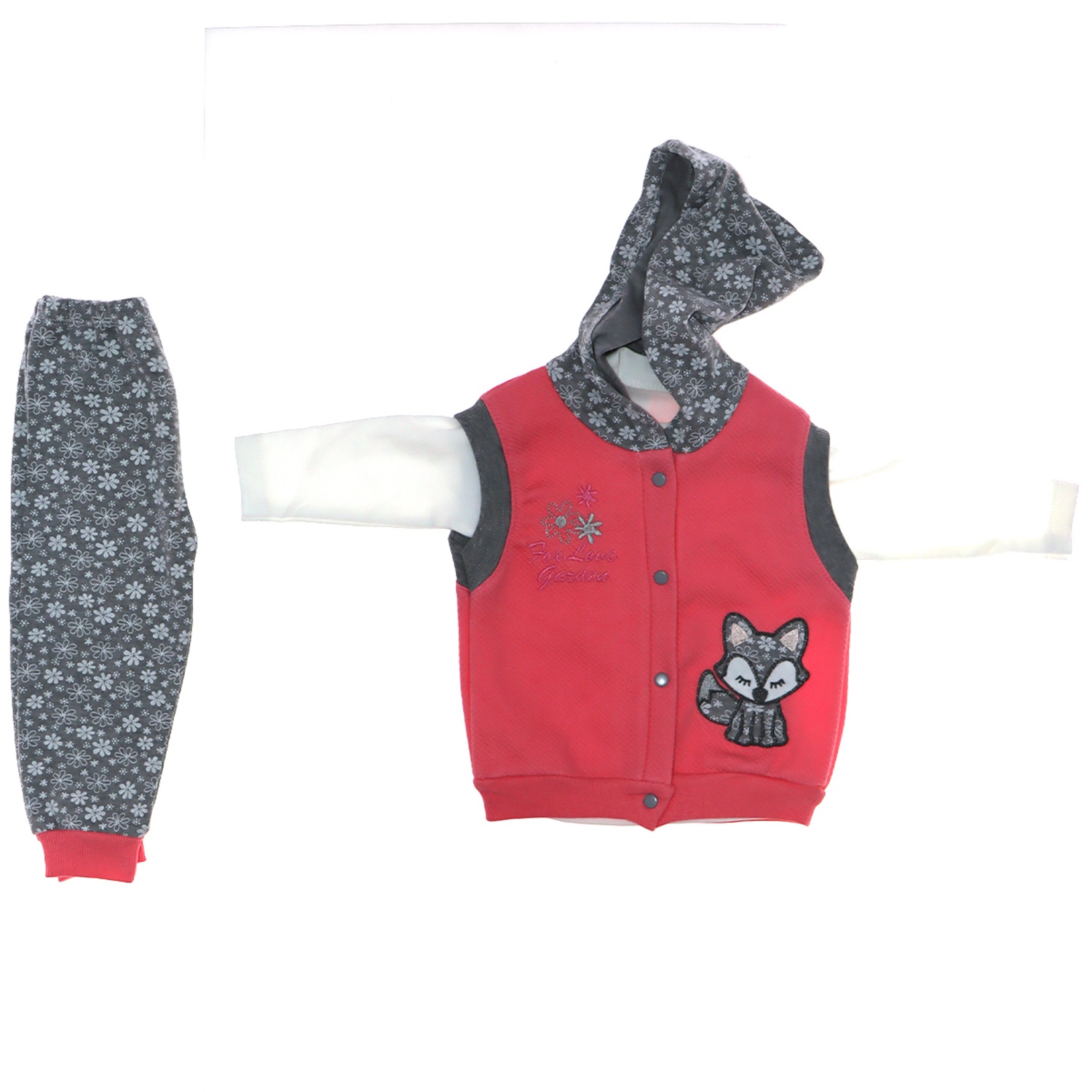 3056 Kız Mobil Rakun Hırka 3 Lü Penye Yelek Takım 12-18 Ay