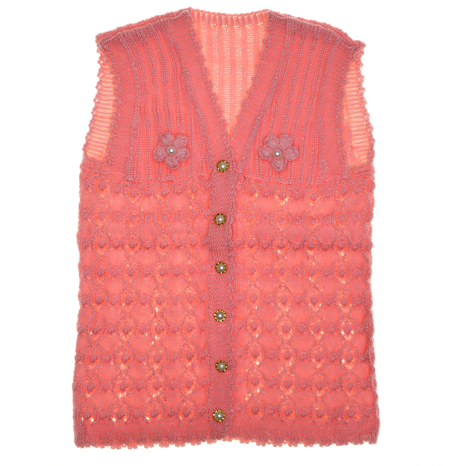 Eif Simli Saç Örgü Triko Kız Bebe Yelek 1-2 Yaş