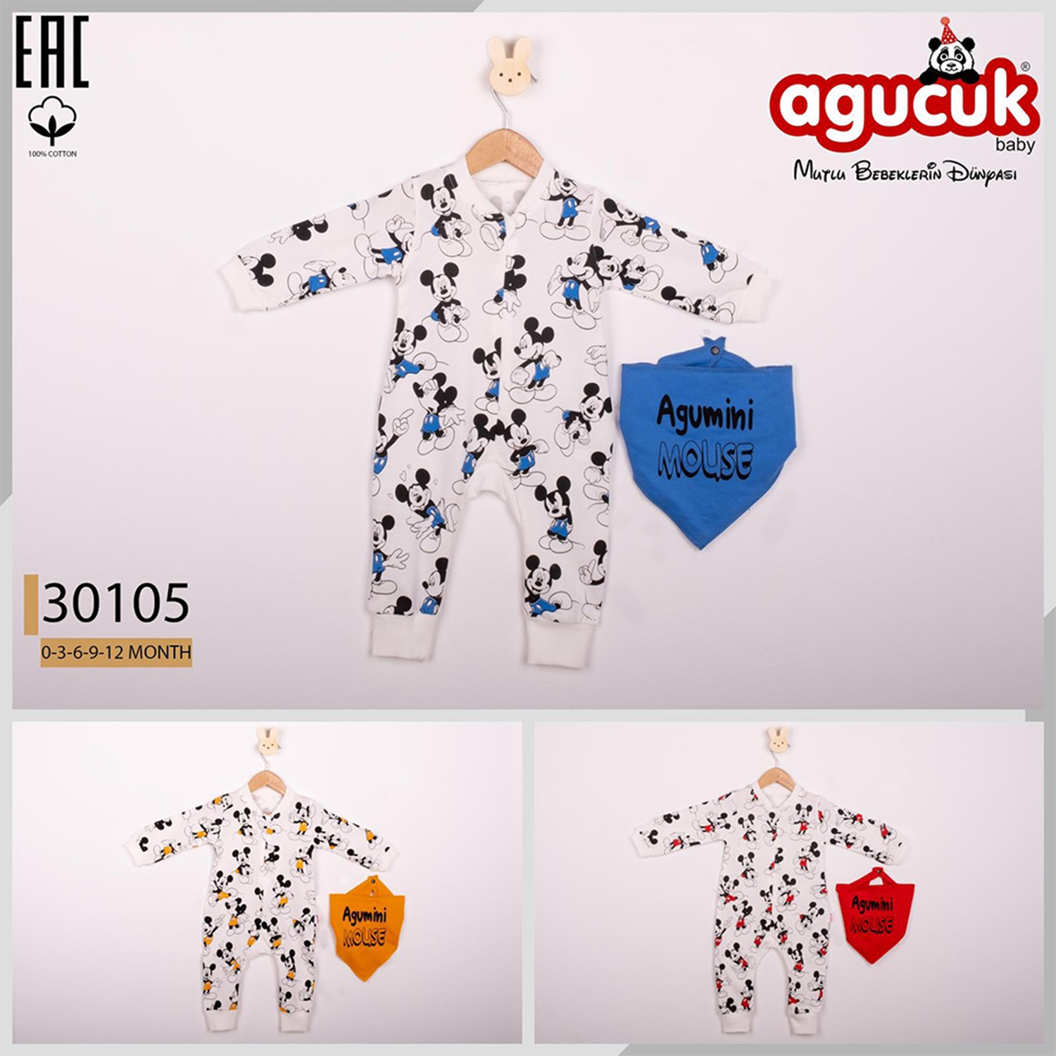Agucuk Baby 30105 Erkek Bebe Mickey Mouse Baskılı Patiksiz Tulum 3 Ay