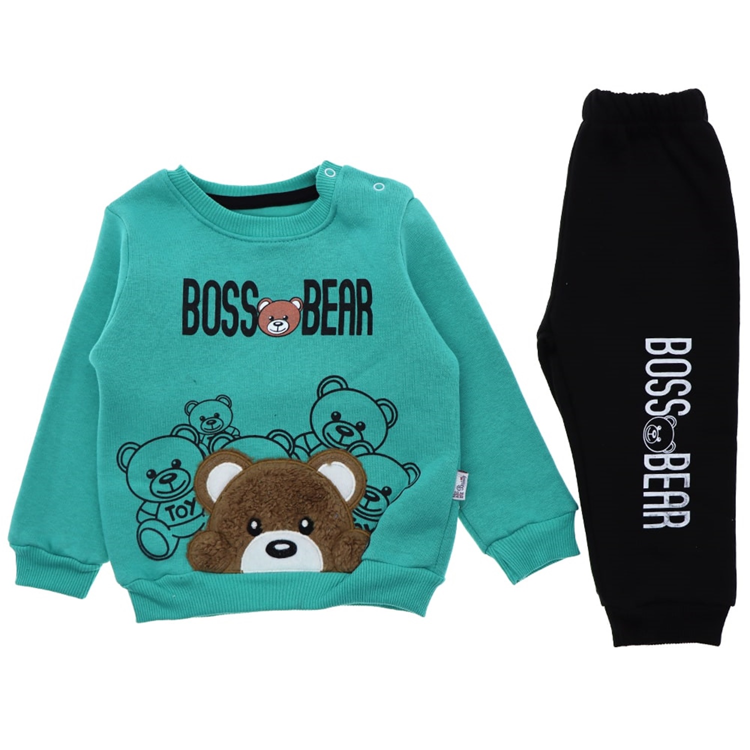 Betüş Bebe 05268 Erkek Bebe Ayı Nakışlı 3 İp Takım 6-18 Ay - Yeşil - 6-9-12-18 AY