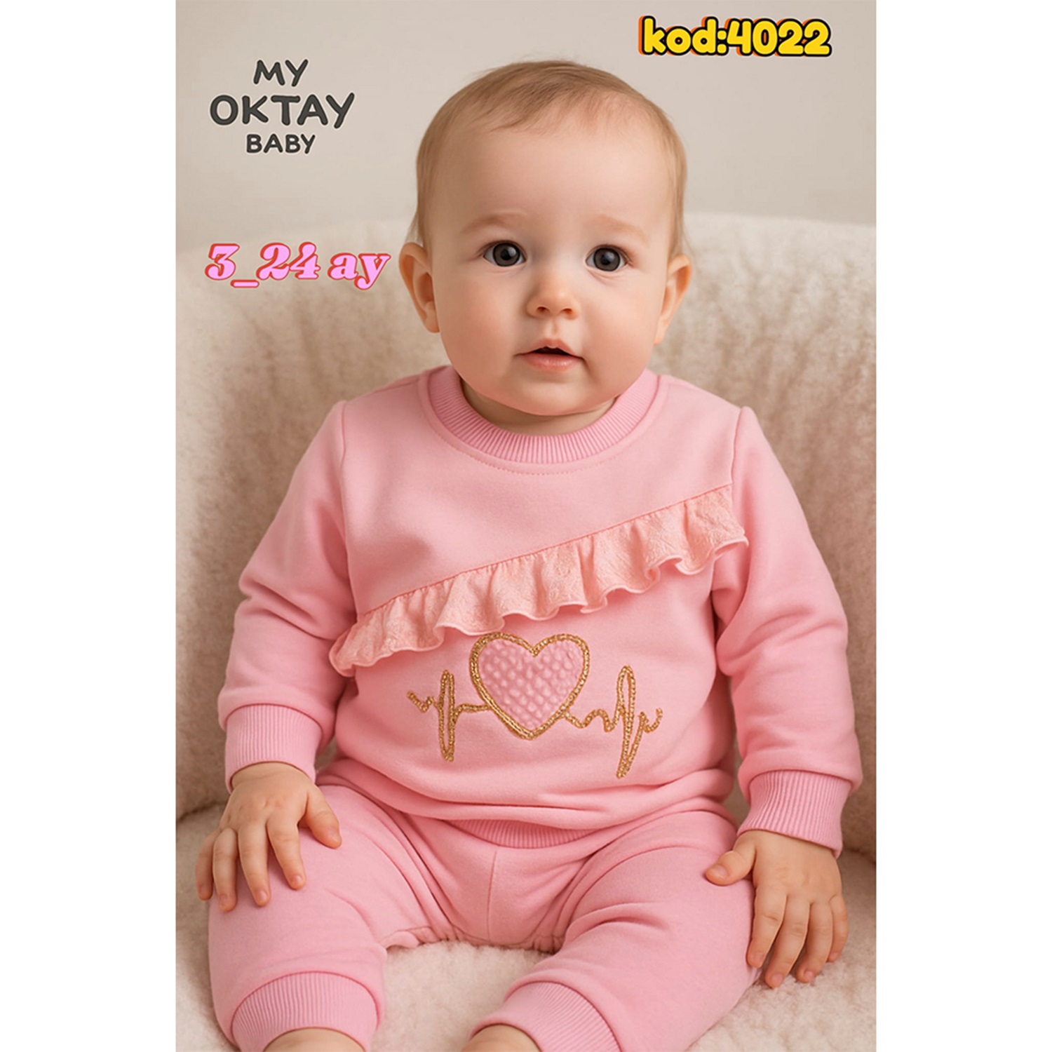 My Oktay 4022 Kız Bebe 2 İp Kalp Taşlı Nakışlı Takım 3-24 Ay