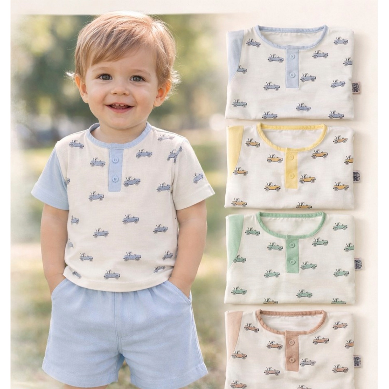 My Oktay 5112 Erkek Bebe Müslin Araba Baskılı Takım 6-24 Ay