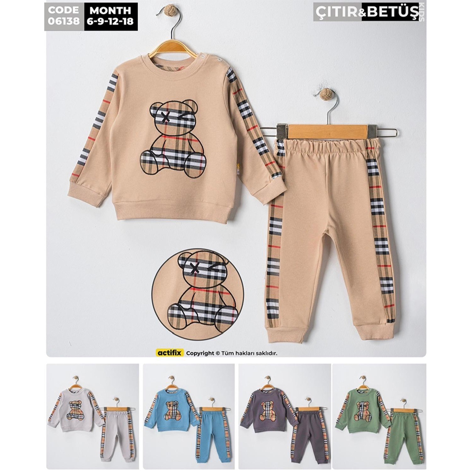 Çıtır 6138 Erkek Bebe 2 İp Bear Nakışlı Takım 6-24 Ay