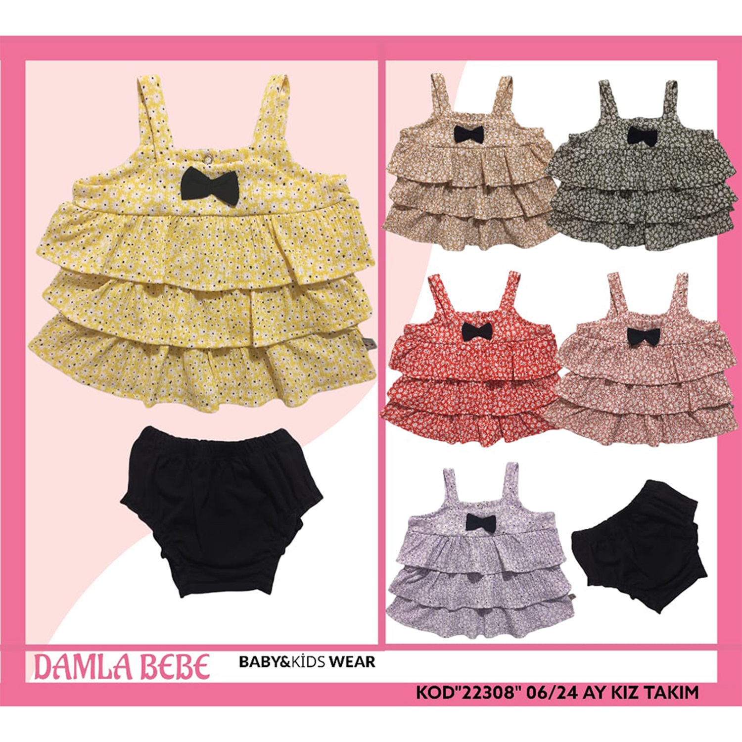 Damla 22308 Kız Bebe Desenli Fırfırlı 2Li Takım 6-24 Ay