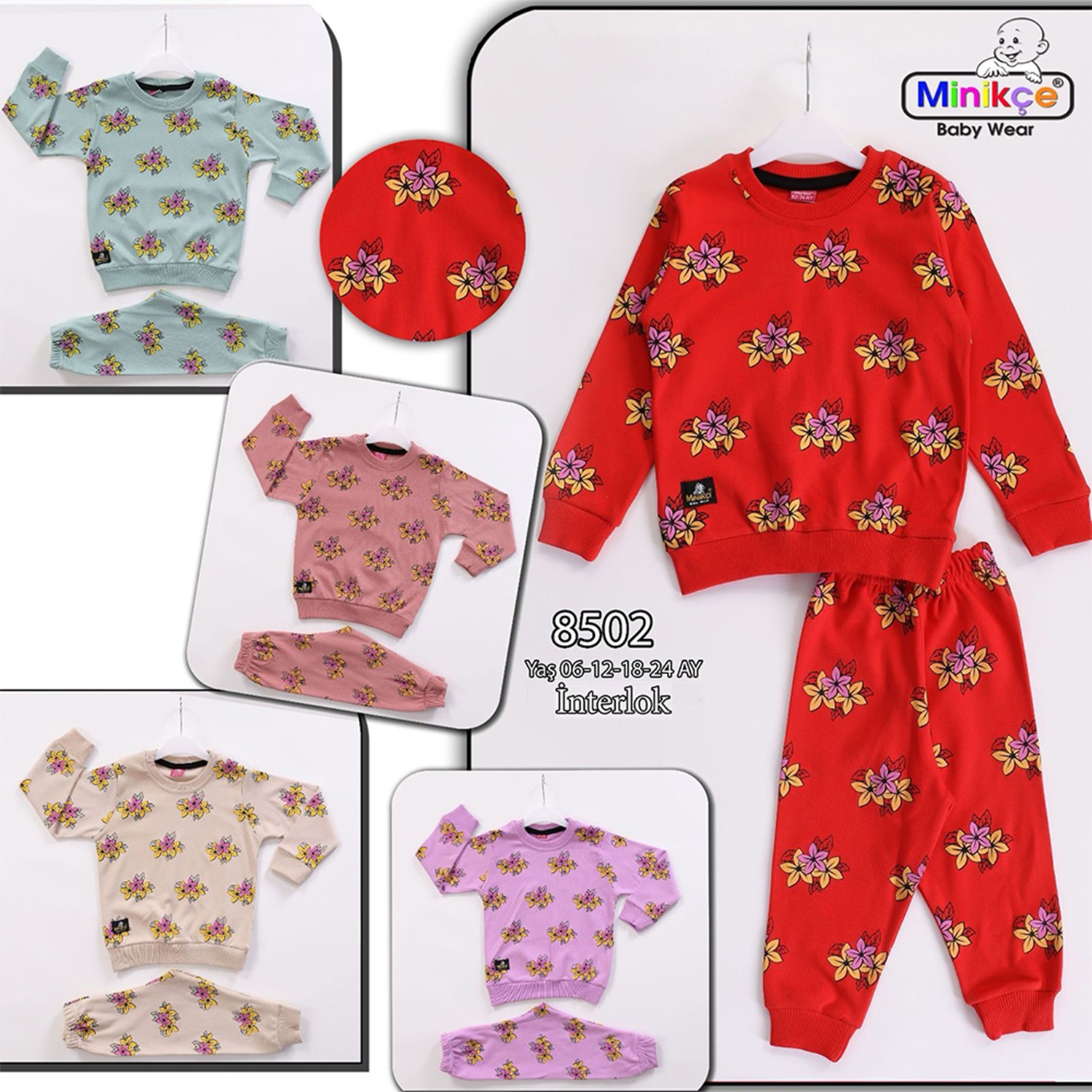 Minikçe 8502 Kız Bebe Pano Çiçek Baskılı Takım 6-24 Ay