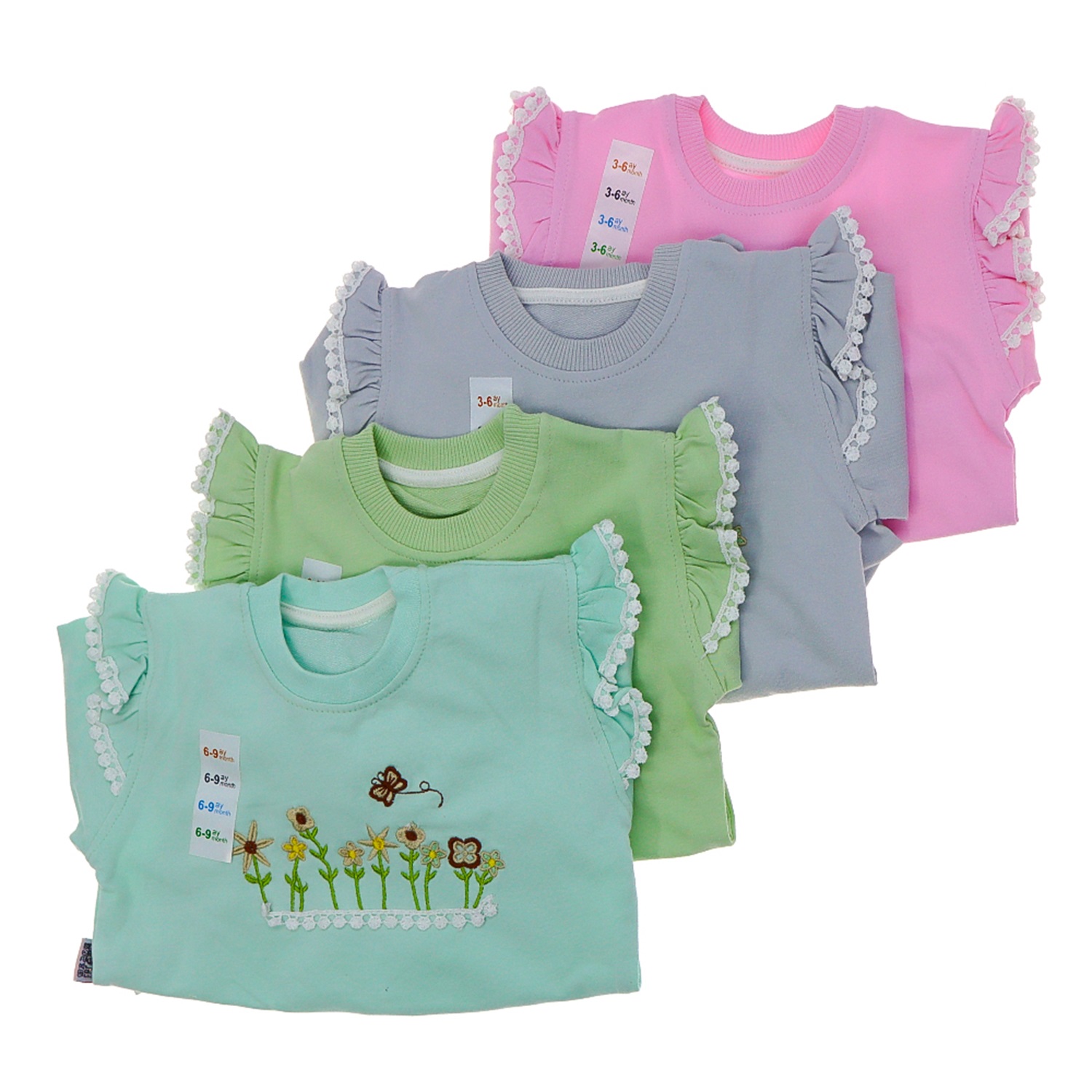 My Oktay 2184 Kız Bebe Penye Çiçek Nakışlı Dantelli 2 Li Takım 9-24 Ay