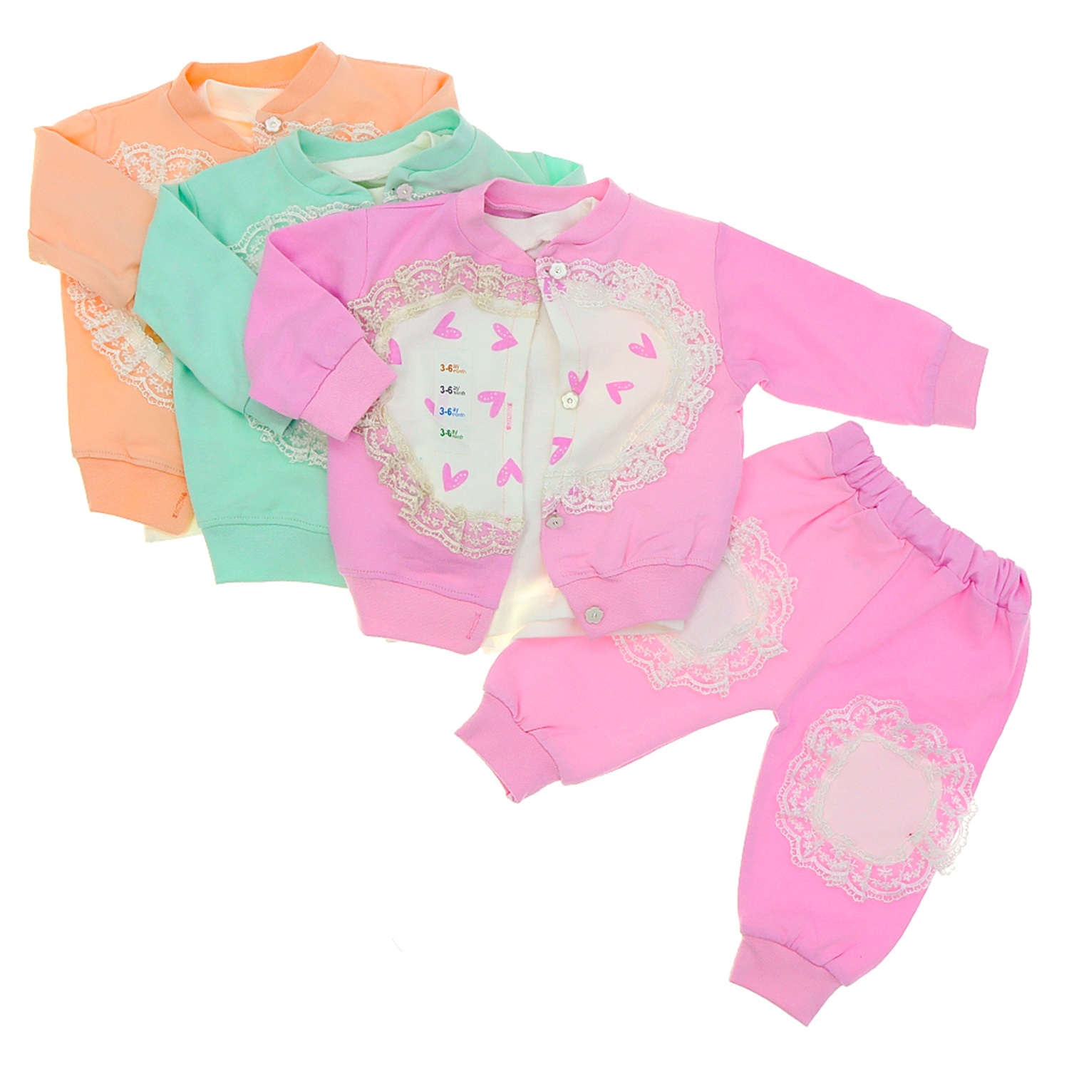 My Oktay 2272 Kız Bebe Penye Kalp Baskılı Dantelli 3 Lü Takım 9-24 Ay