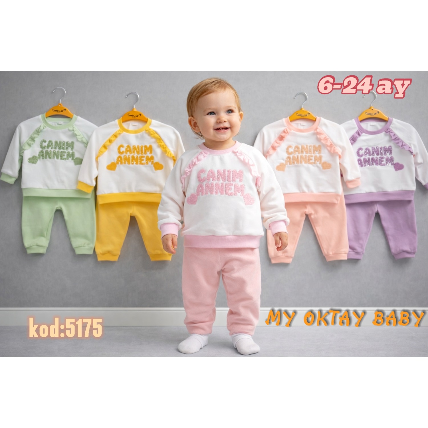 My Oktay 5175 Kız Bebe Penye Süzine Canım Annem Nakışlı Takım 6-24 Ay