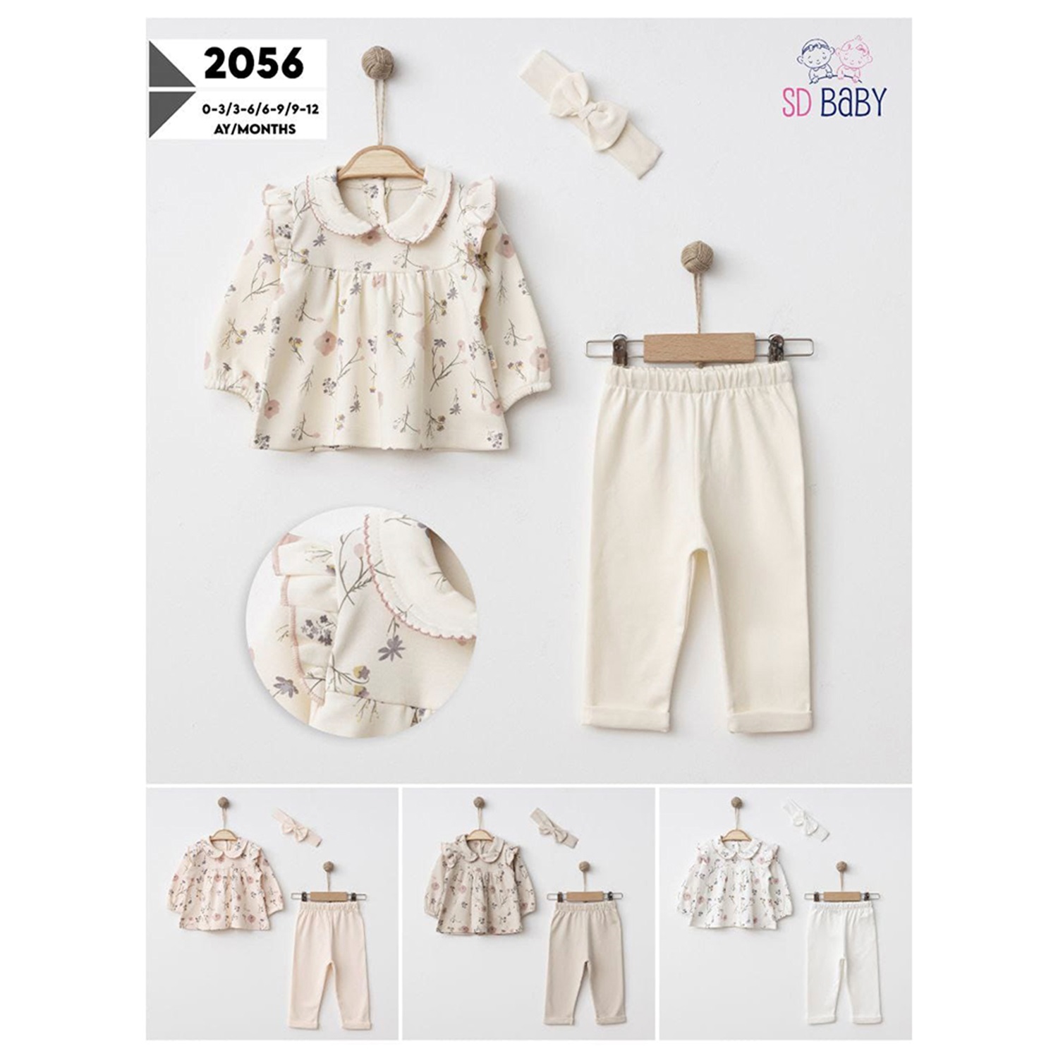 SD Baby 2056 Kız Bebe Penye Çiçek Desenli Takım 6-24 Ay