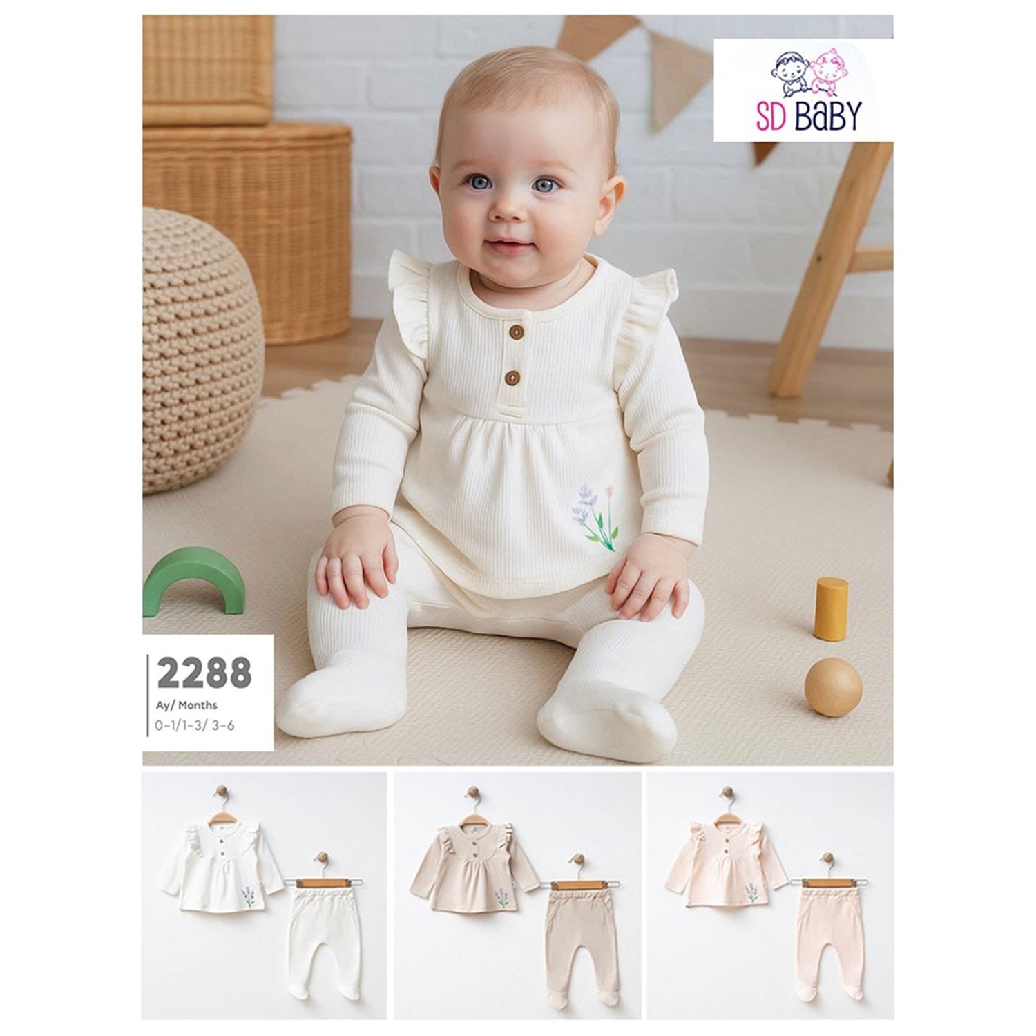 SD Baby 2288 Kız Bebe Penye Lavanta Nakışlı Omuz Fırfırlı Takım 0-6 Ay