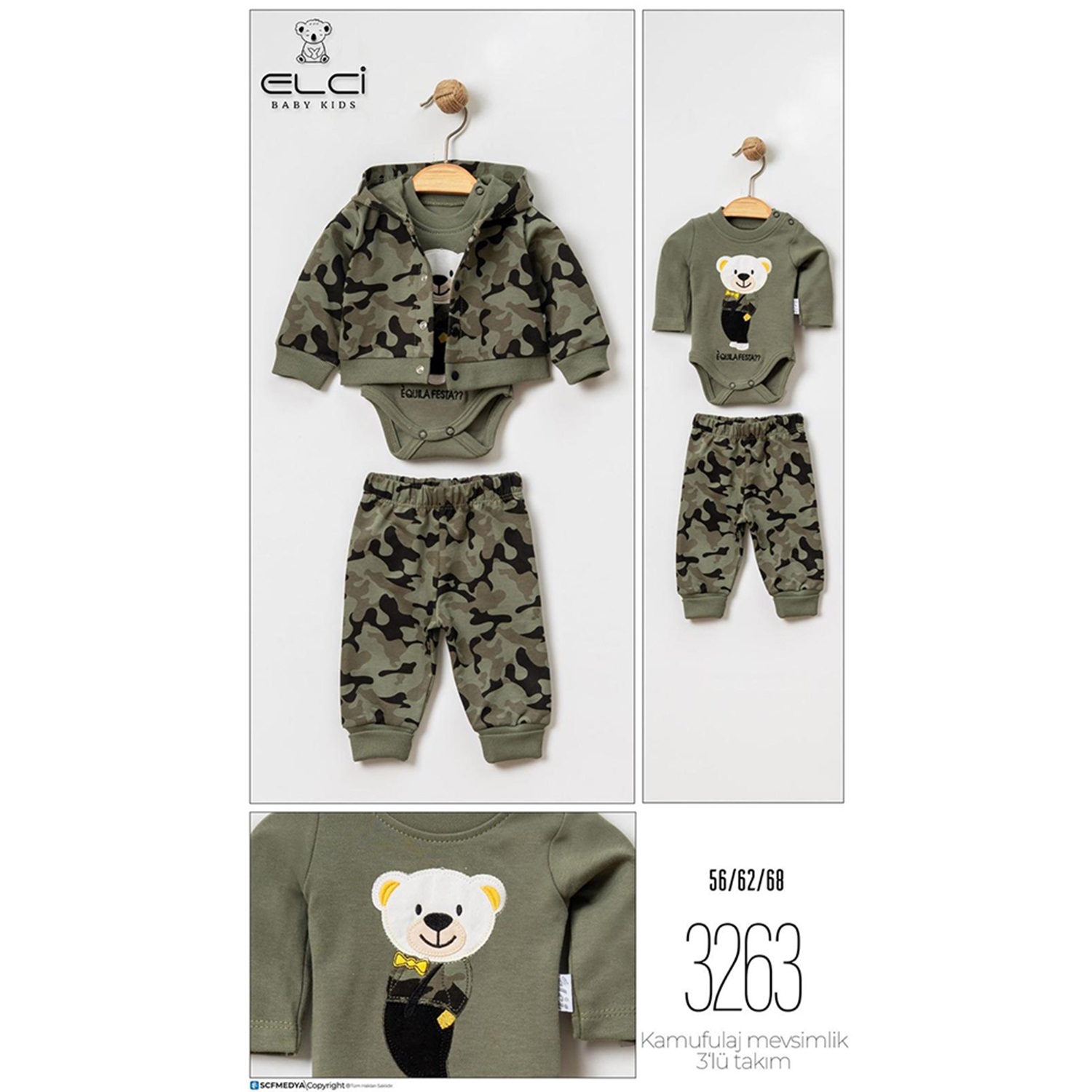 Elci 3263 Erkek Bebe kamuflaj Kapşonlu 3 Lü Takım 3-9 Ay
