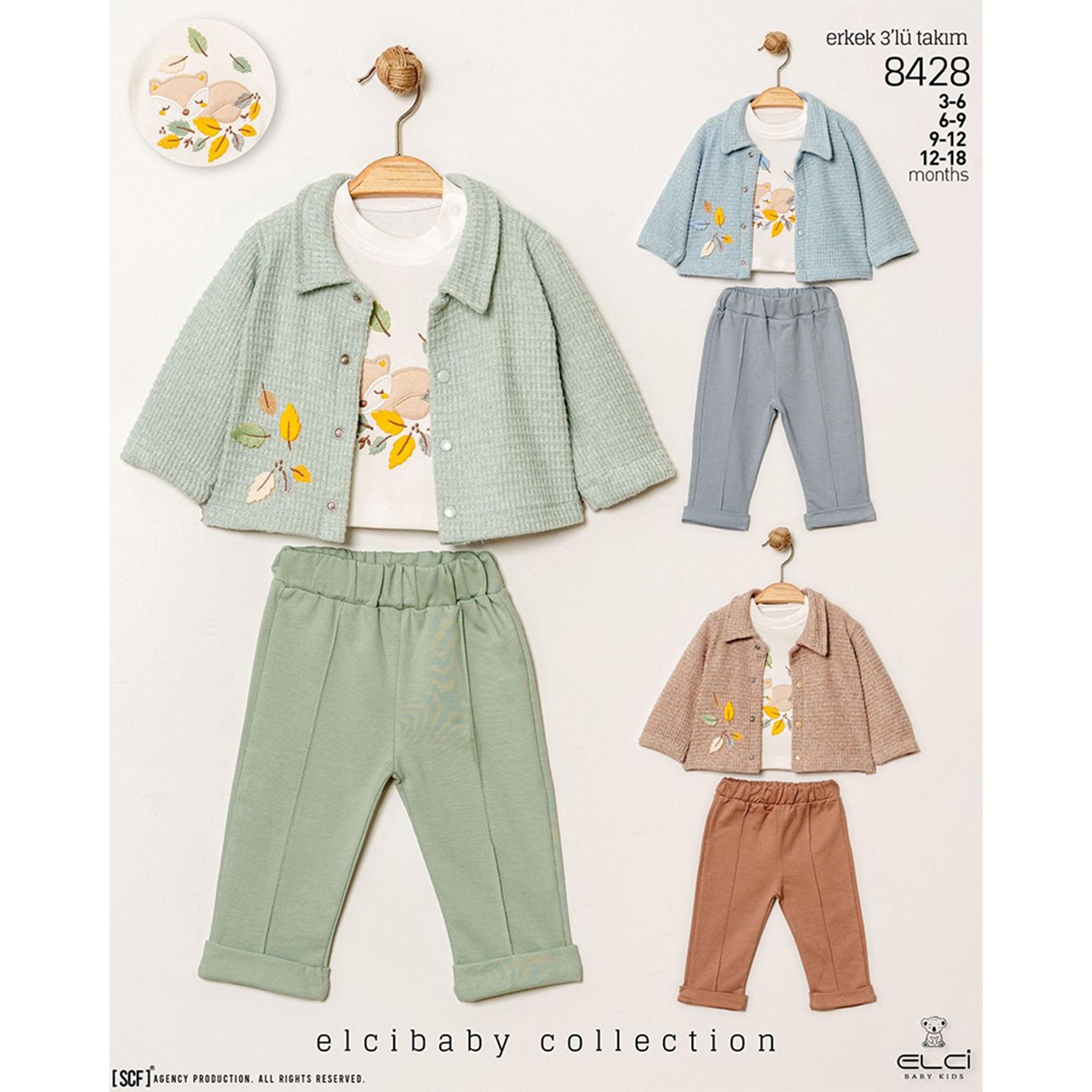 Elci 8428 Erkek Bebe Sevimli Kedi Nakışlı 3 Lü Takım 3-18 Ay