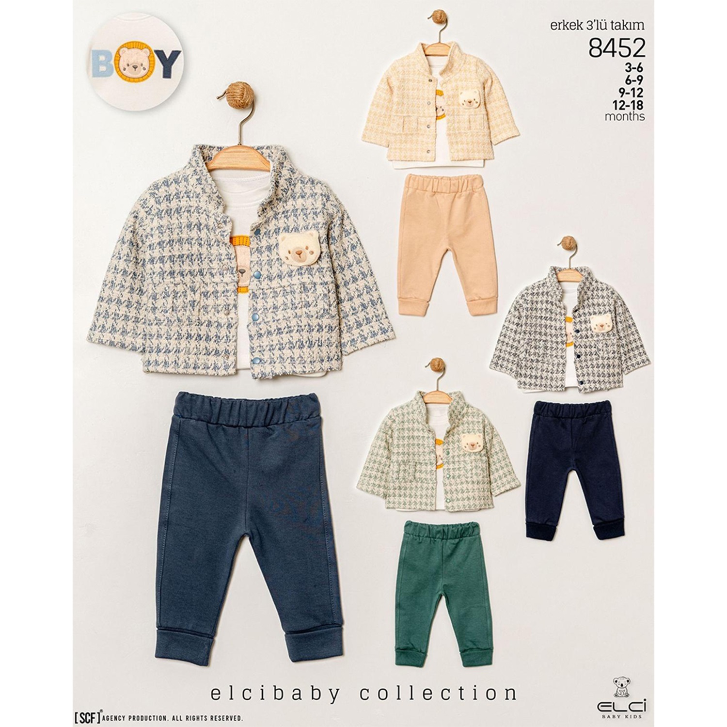 Elci 8452 Erkek Bebe Peluş Ayı Nakışlı 3 Lü Takım 3-18 Ay