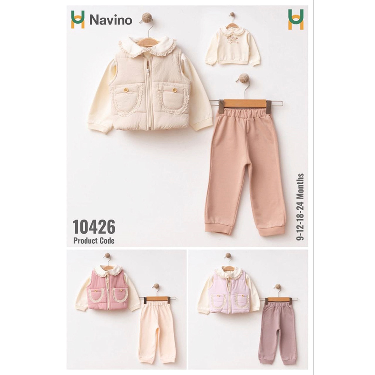 Navino 10426 Kız Bebe Cep Dantelli Yelekli 3 Lü Takım 6-18 Ay