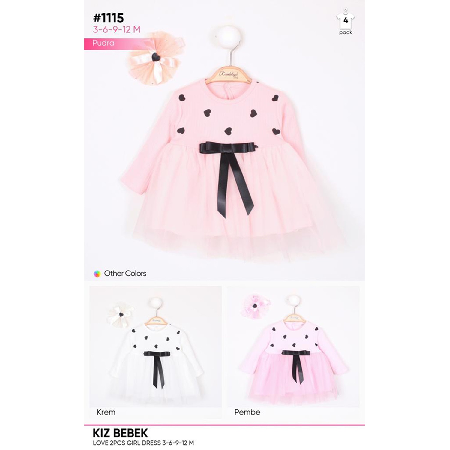 Minilay 1115 Kız Bebe Kalpli Tüllü Elbise 3-6-9-12 Ay