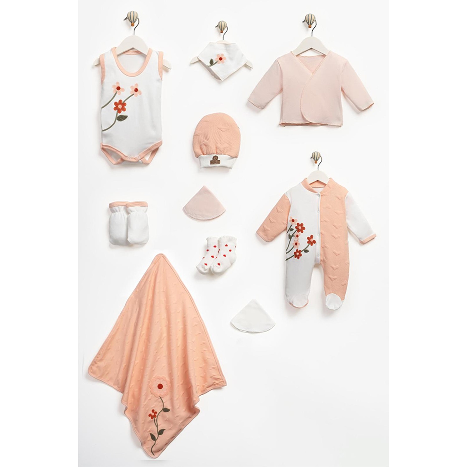 ConCon 1667 Bebe Organik Lüx Çiçek Nakışlı 10 Parça Zıbın Set 0-3 Ay