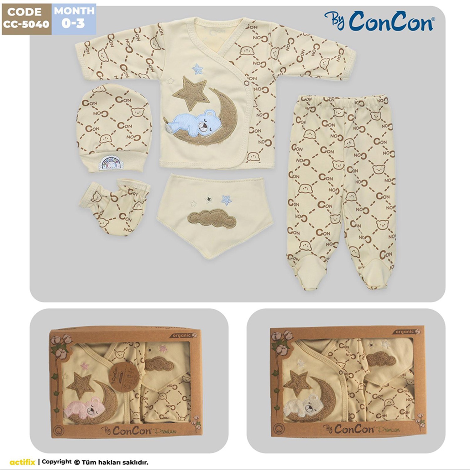 ConCon 8050 Bebe Uyuyan Sevimli Ayıcık Nakışlı 8 Parça Zıbın Set 0-3 Ay