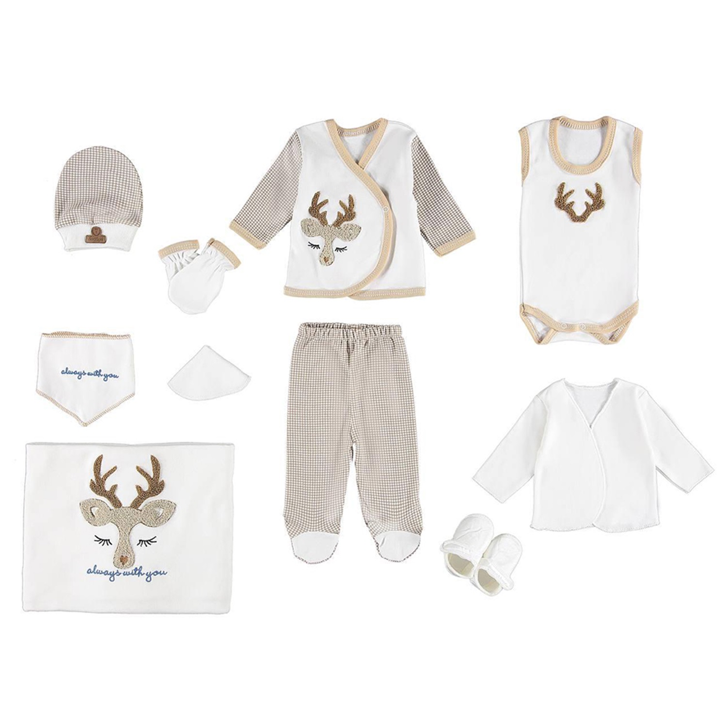 ConCon 8062 Bebe Organik Lüx Süzine Geyik Nakışlı 8 Parça Zıbın Set 0-3 Ay