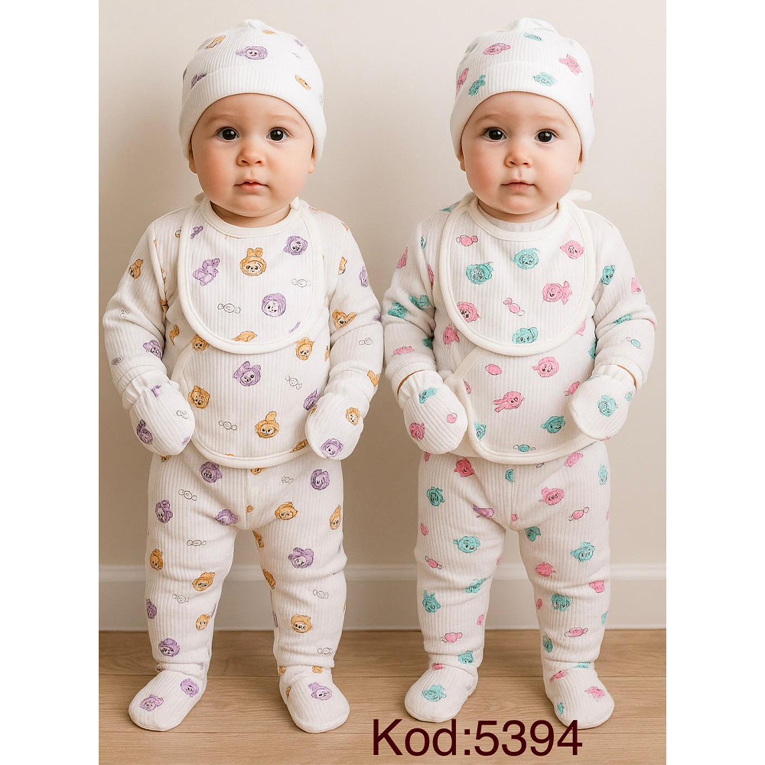 Rozalinda 5394 Bebe Penye Labubu Desenli 5 Parça Takım 0-6 Ay