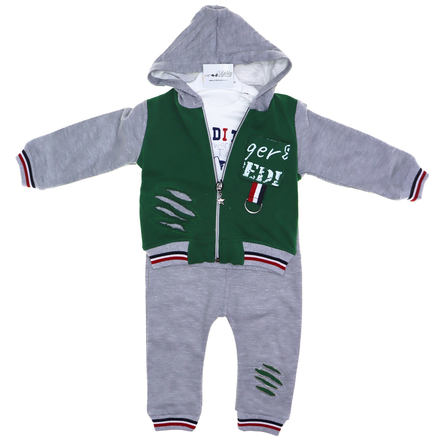 2029 Tiger Baskılı Cepli Hırka 3lü Takım