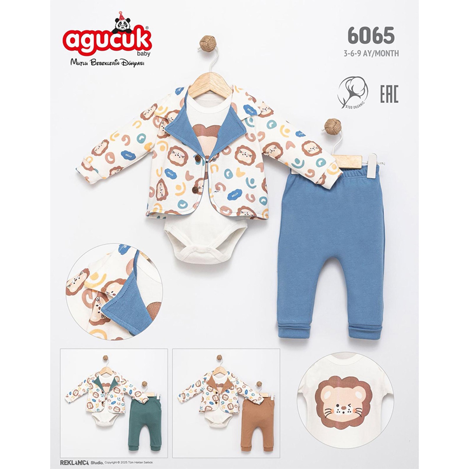 Agucuk Baby 6065 Çocuk 3 Lü Sevimli Ayıcık Yakalı Takım 3-6 Ay