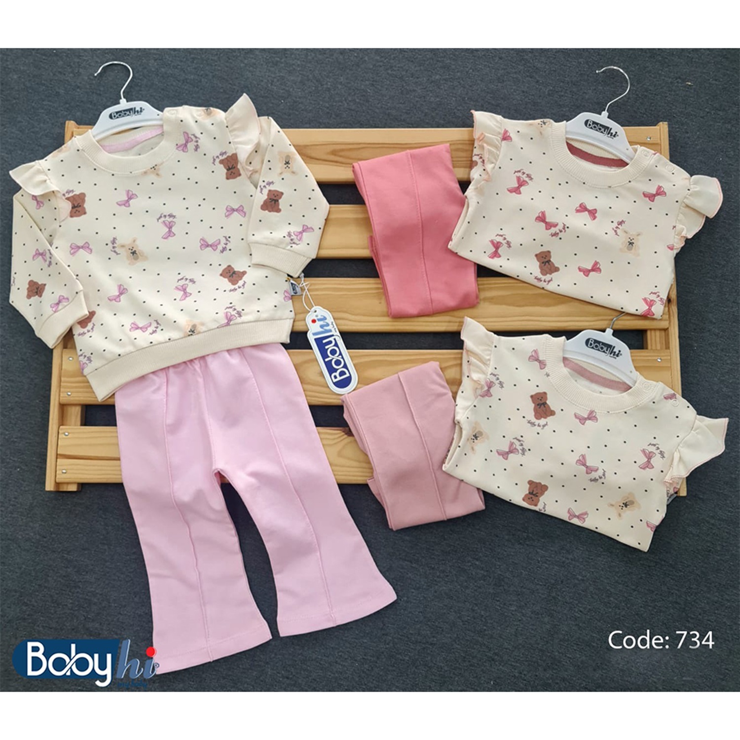 Baby Hi 734 Kız Bebe Penye Fiyonlu Ayıcık 2li Takım 6.9.12 Ay