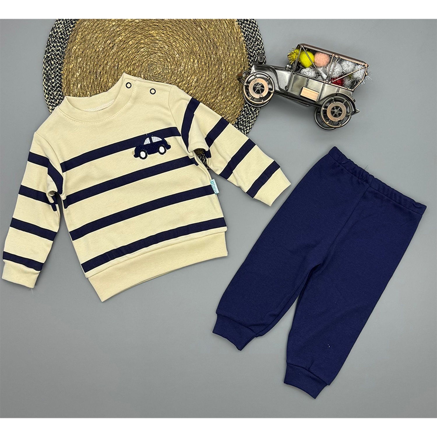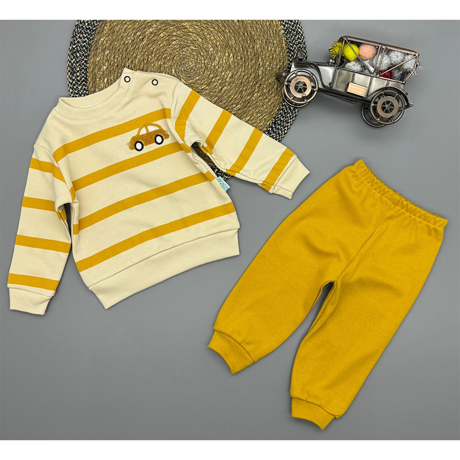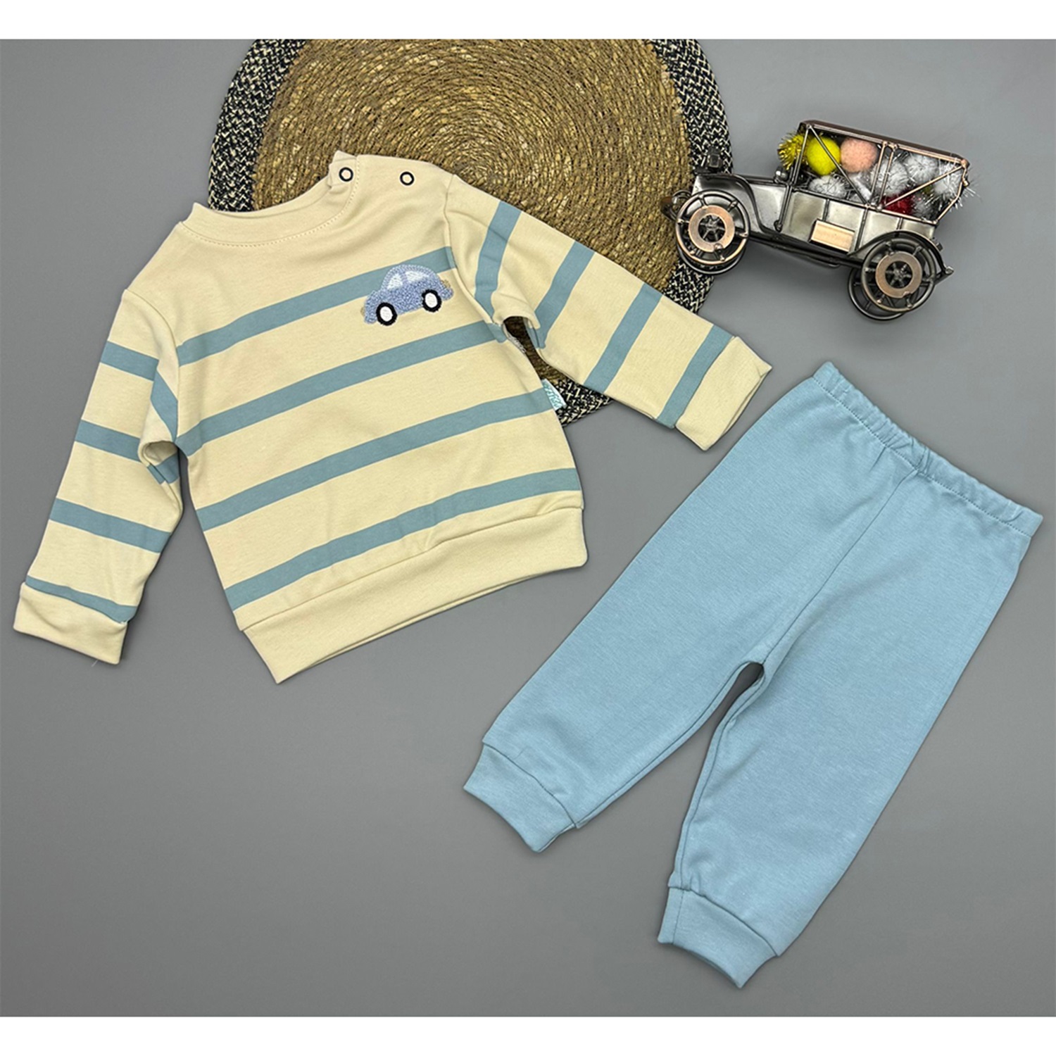 Ceylan Bebe 0009 Çocuk Süzüne Araba Nakışlı Penye Takım Yaş 9-18 Ay