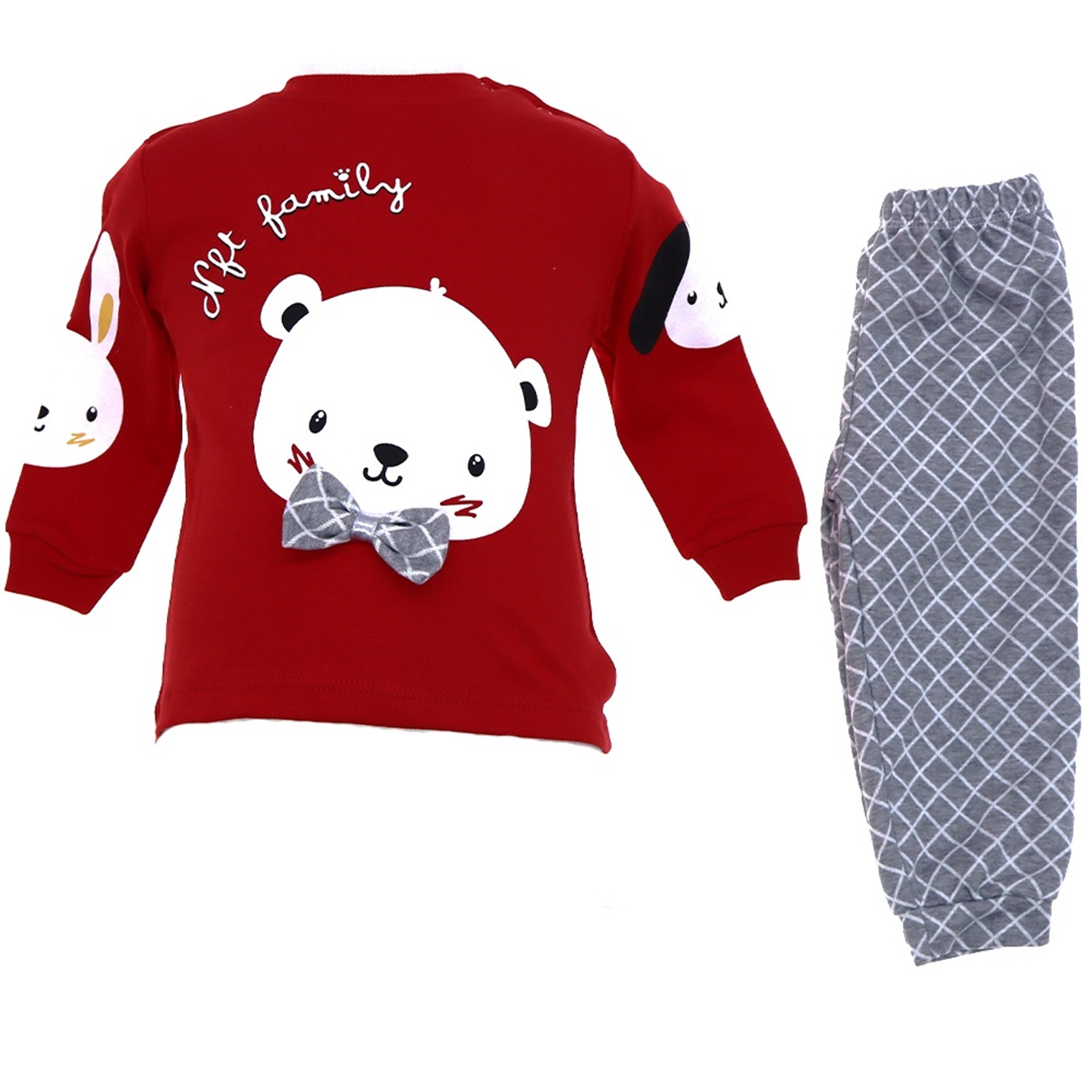 Nafitto 1335 Çocuk Ayıcık Baskı Kare Desen 2 li Takım 2 Yaş