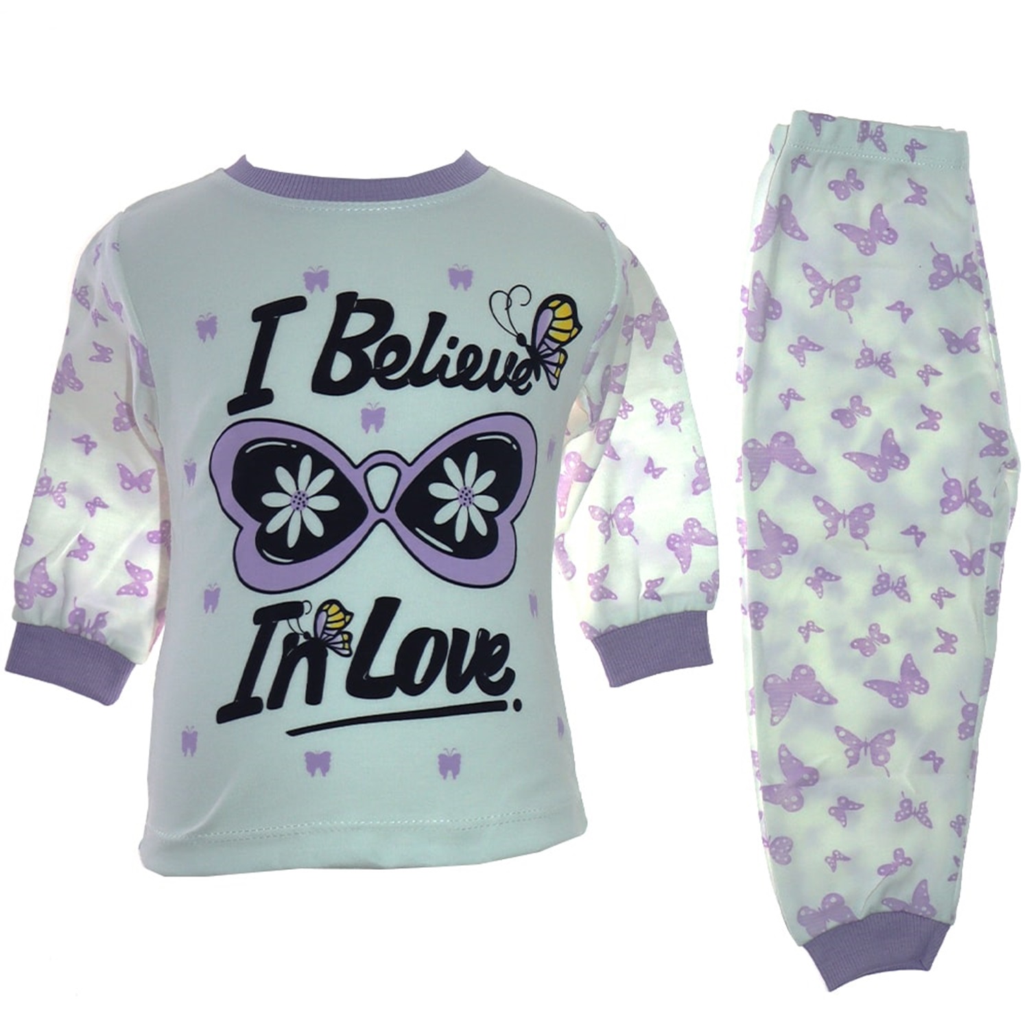 1260 Kelebek Desenli 2Li Kız Çocuk Pijama Takım 1-3 Yaş