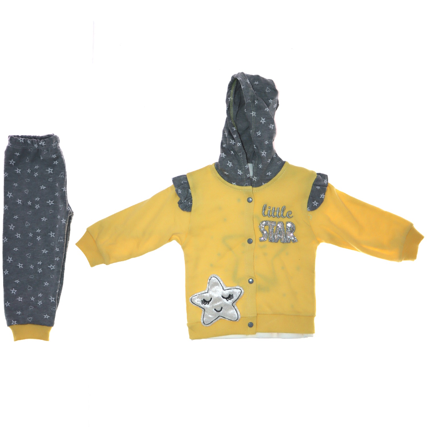 3058 Kız Kapşonlu Star İşlemeli 3 Lü Penye Takım
