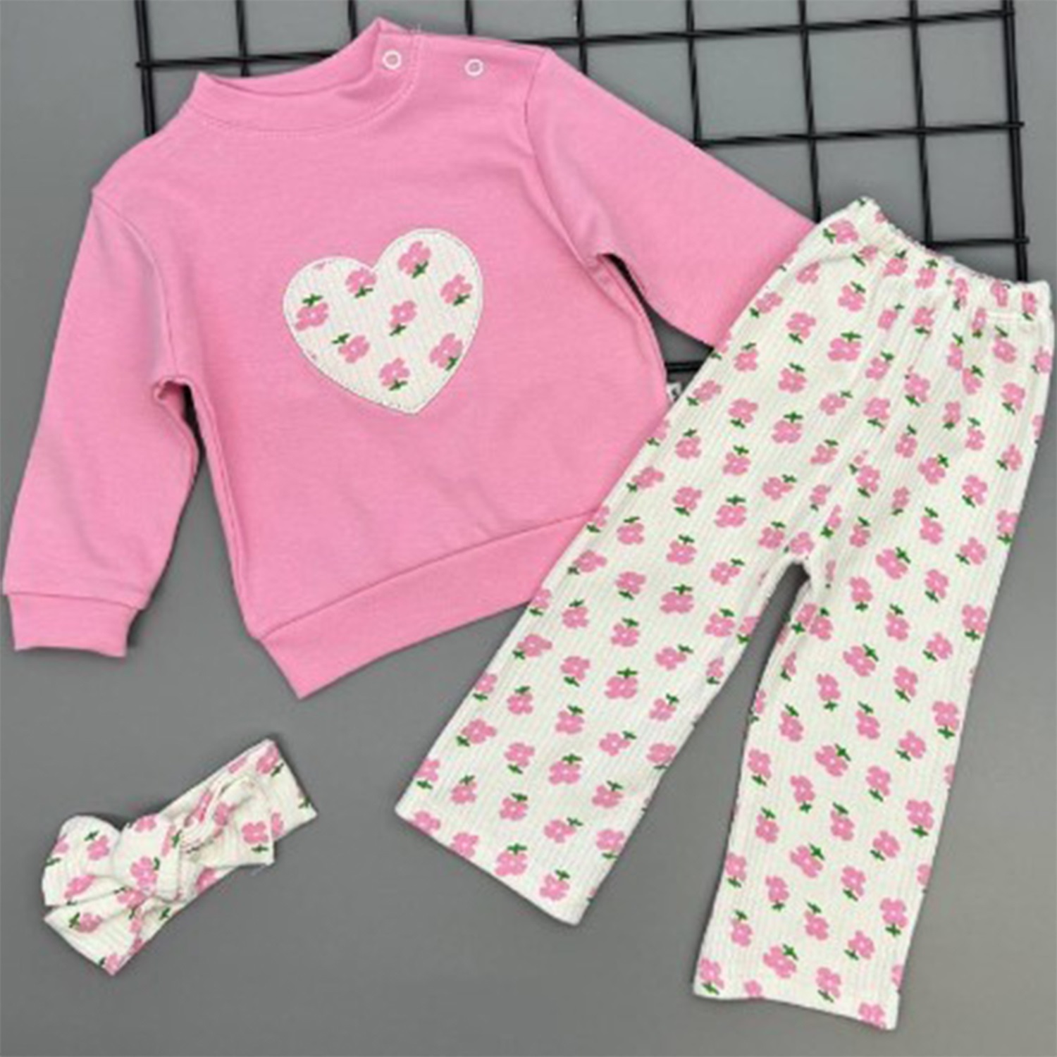 Ceylan Bebe 0024 Kız Bebe Penye Menekşe Baskılı Saç Bandalı Takım 9-24 Ay