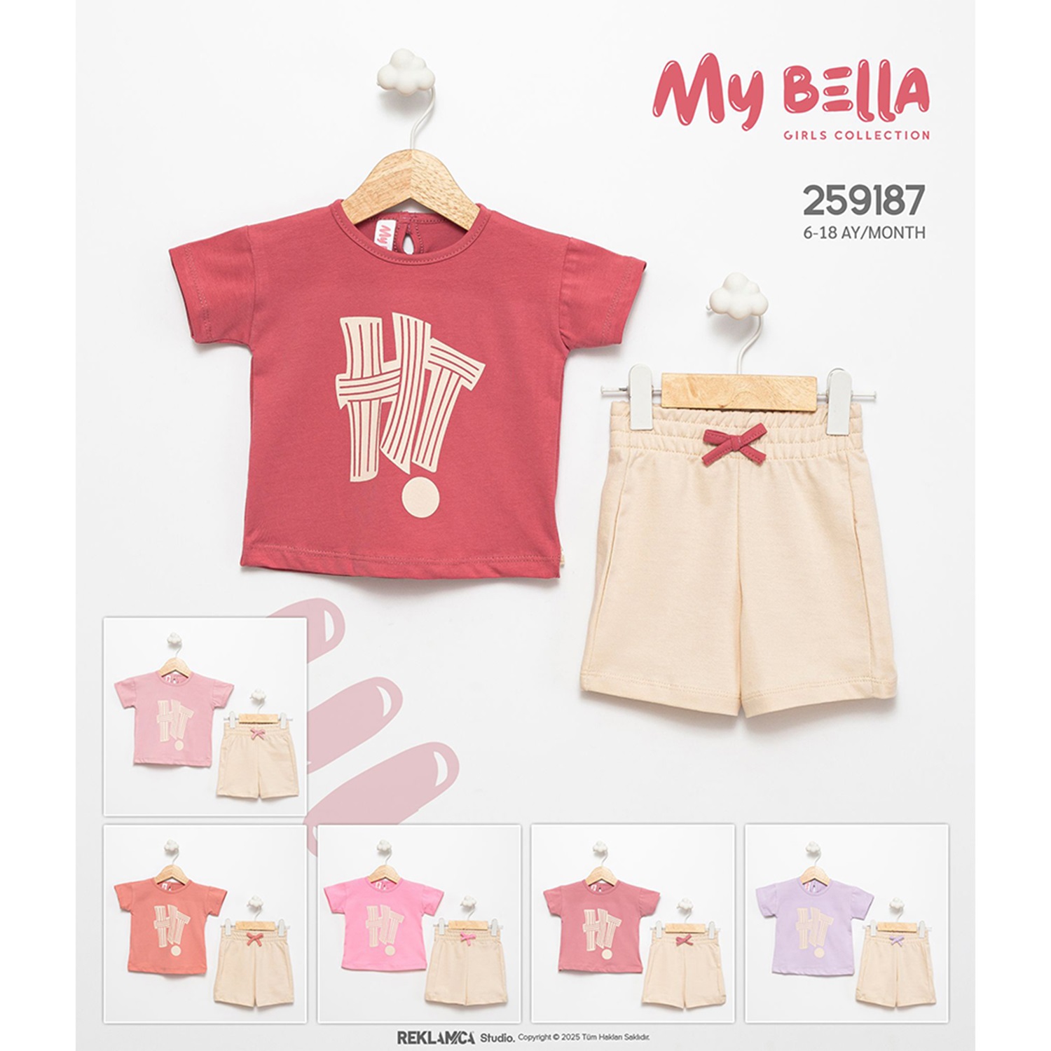 My Bella 9187 Kız Bebe Penye Baskılı Şortlu Takım 6-18 Ay