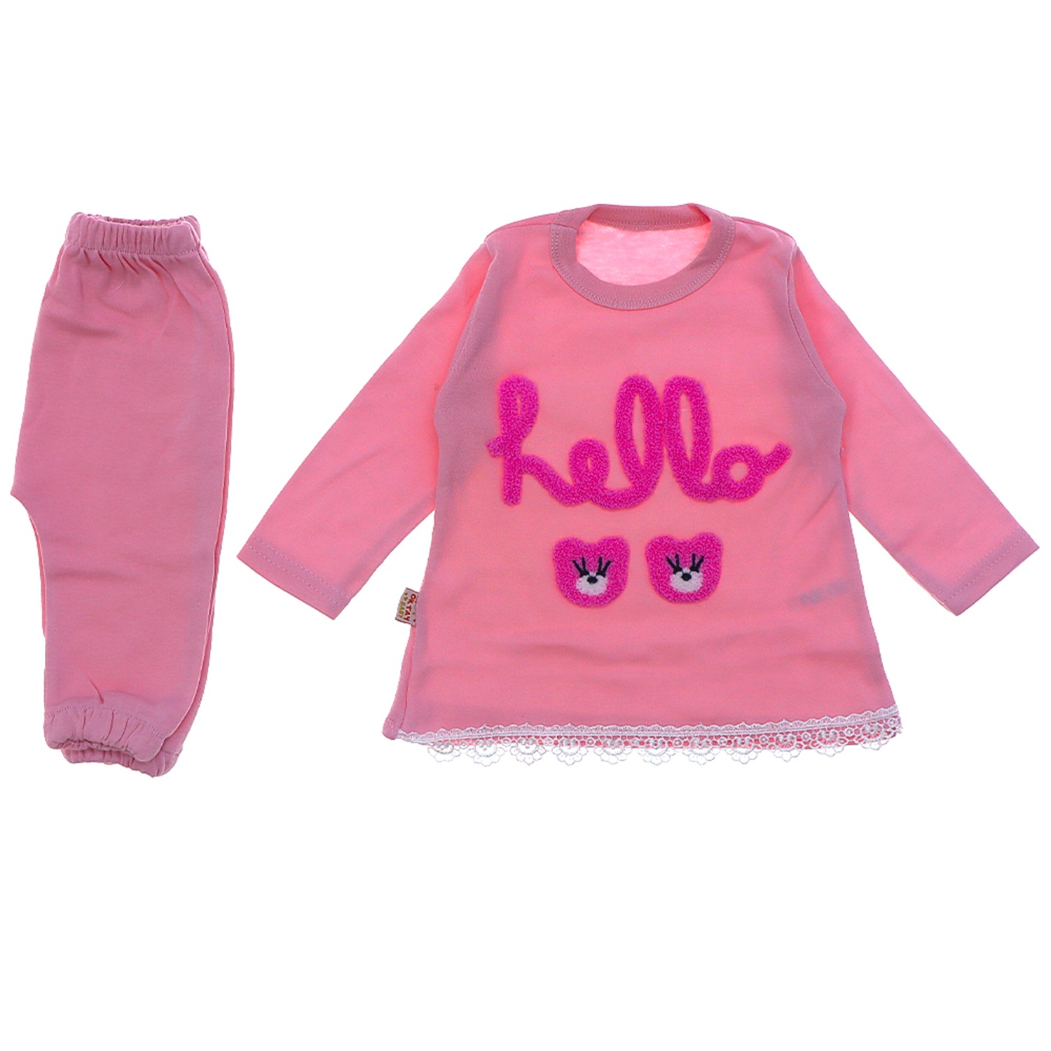My Oktay 3090 Kız Bebe Hello Süzine Nakışlı Tunikli 2 Li Takım 3-9 Ay