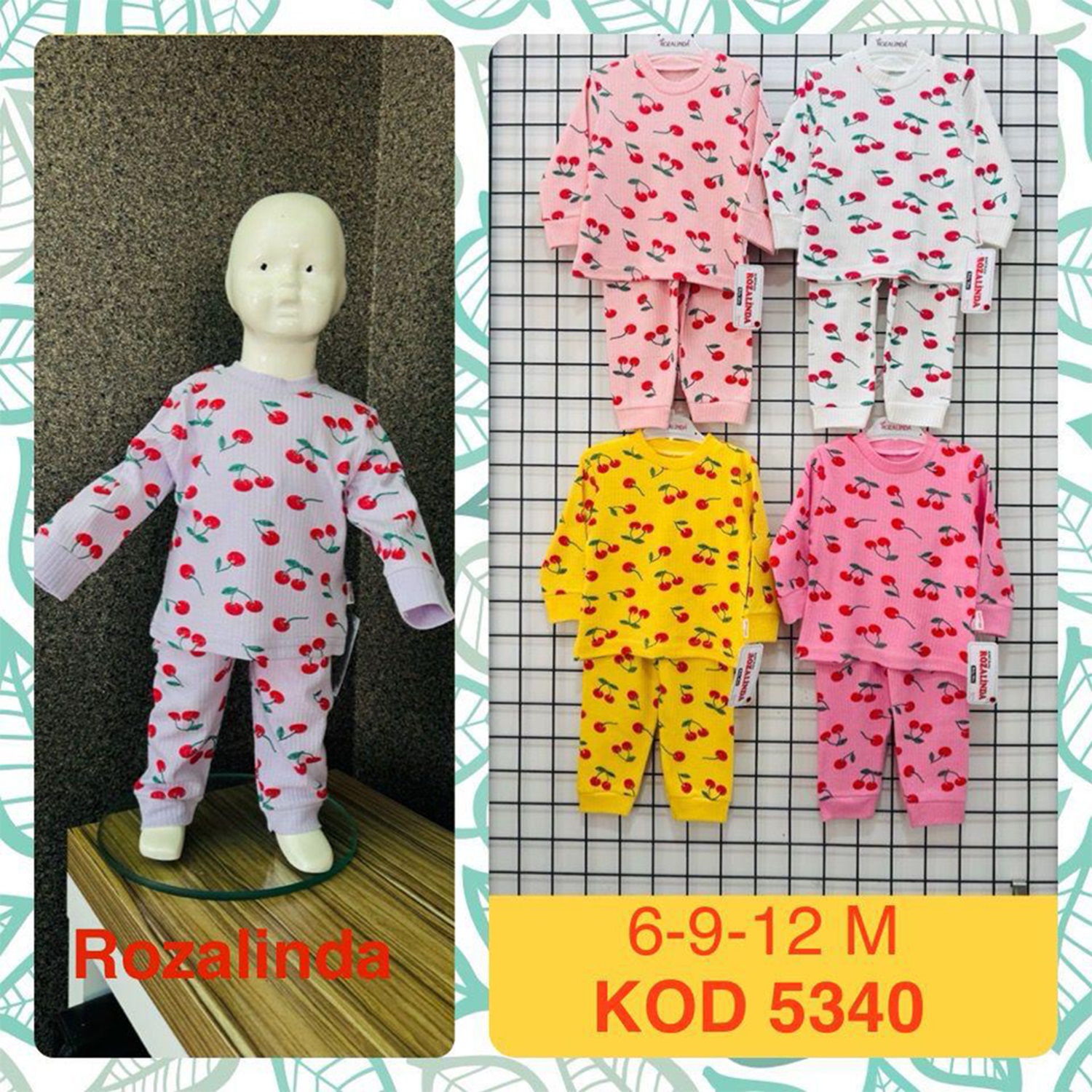 Rozalinda 5340 Kız Bebe Penye Kıraz Baskılı PijamaTakım 6-12 AY