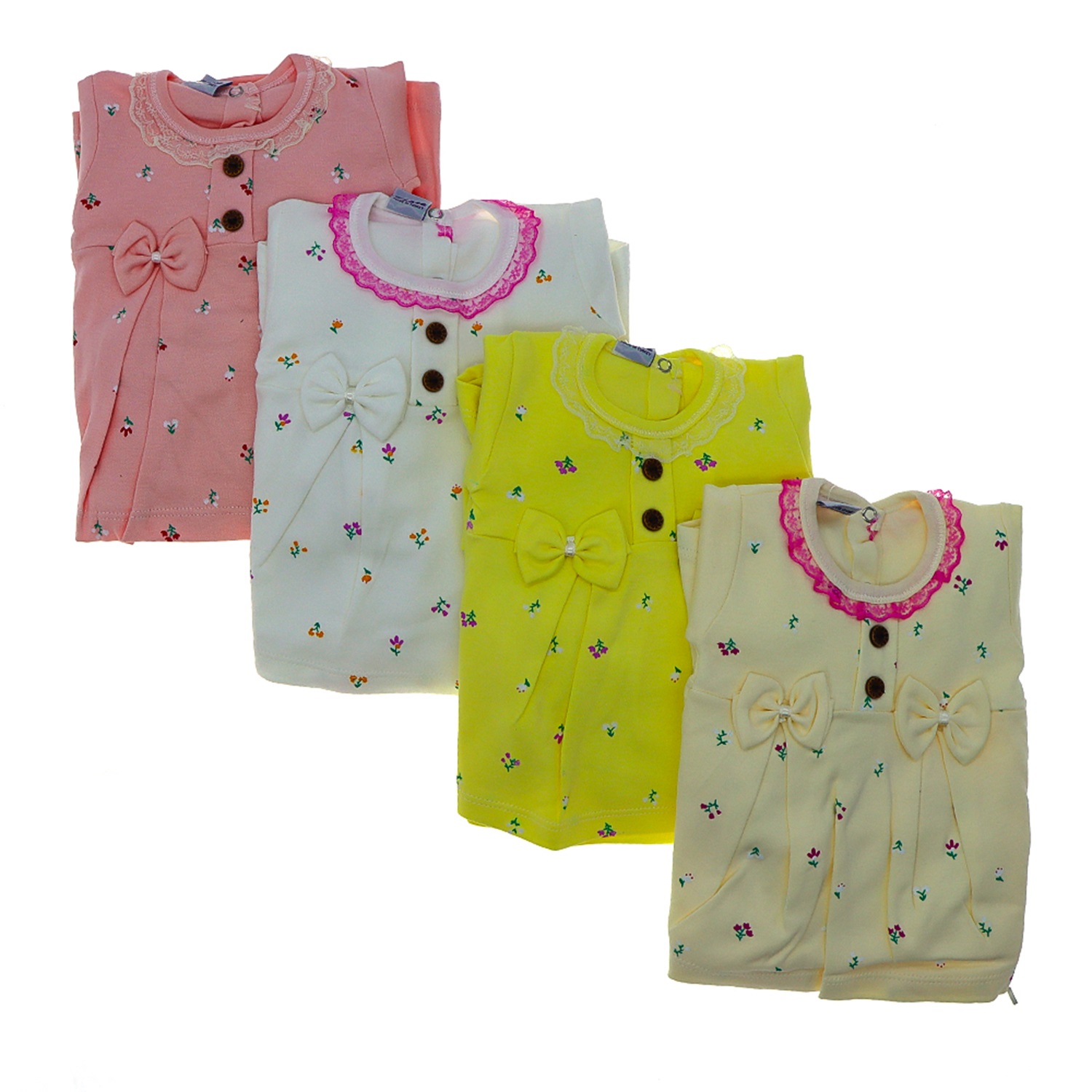 Tomofil 936 Kız Çocuk Fiyonklu Çiçek Baskılı Takım 3-6 Ay - Krem