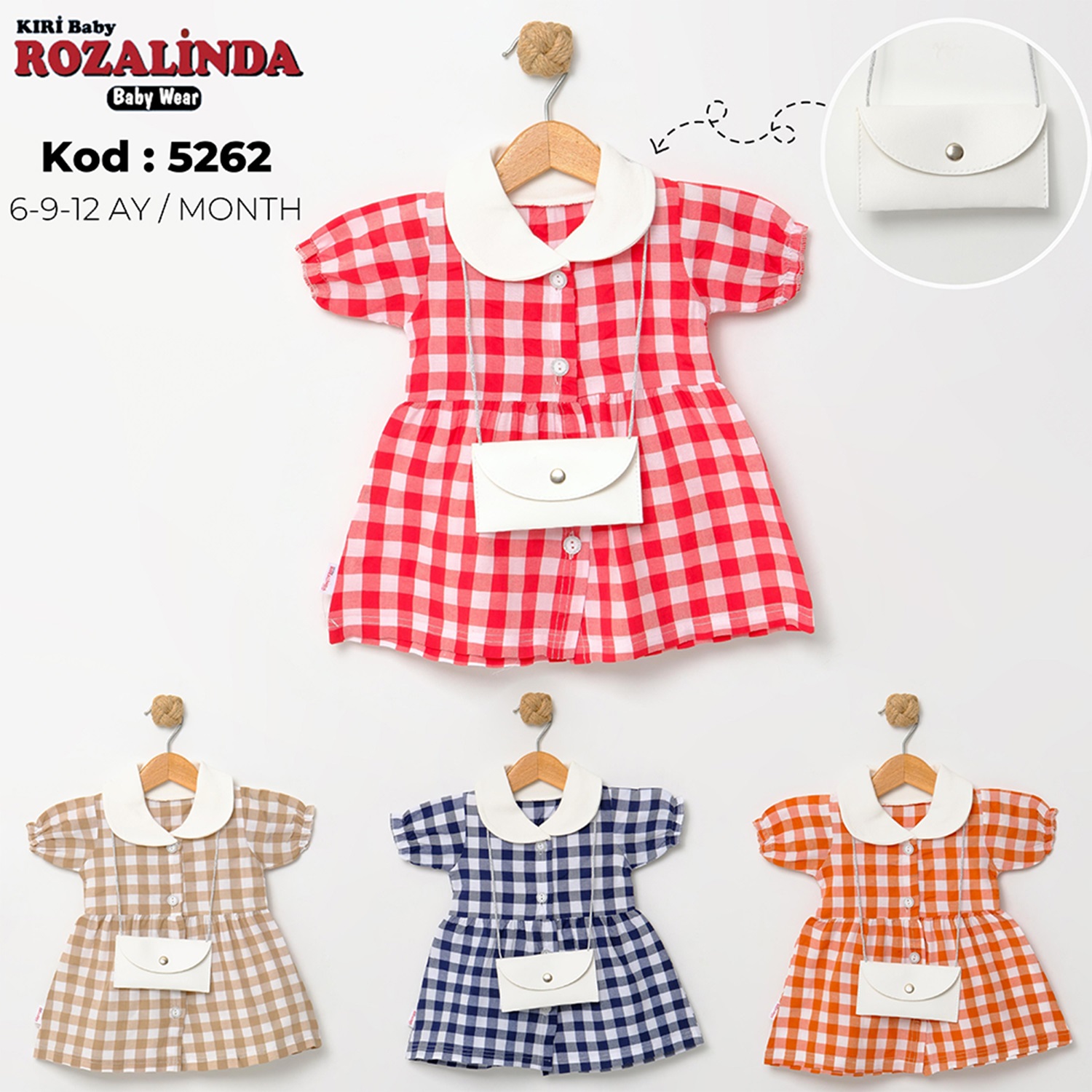 Rozalinda 5262 Kız Bebe Penye Metraj Askılı Kareli Elbise 6-12 Ay