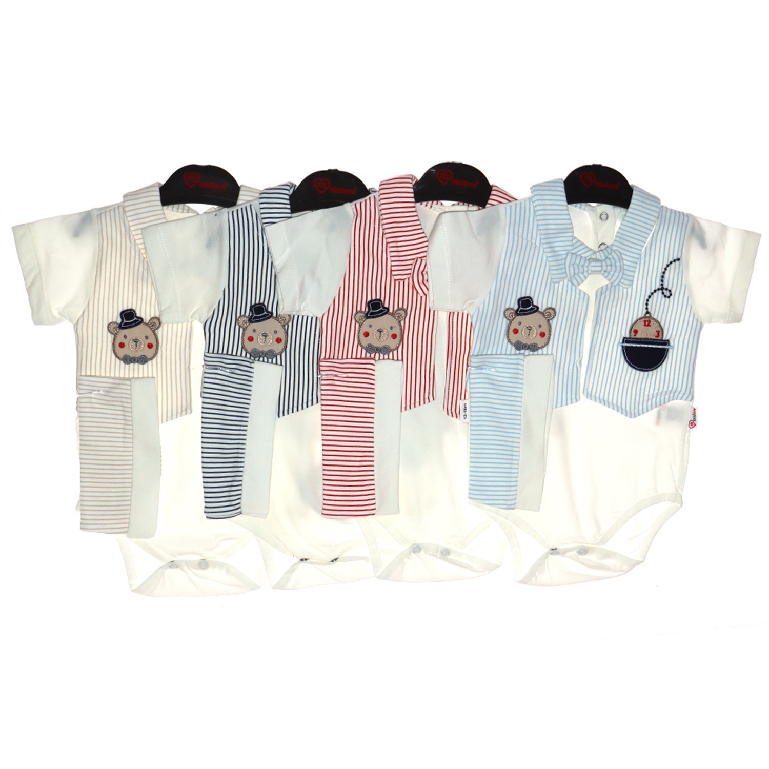 Mini Luck 4773 Erkek Bebe Çizgili Şapkalı Bady 6-9-12-18 Ay