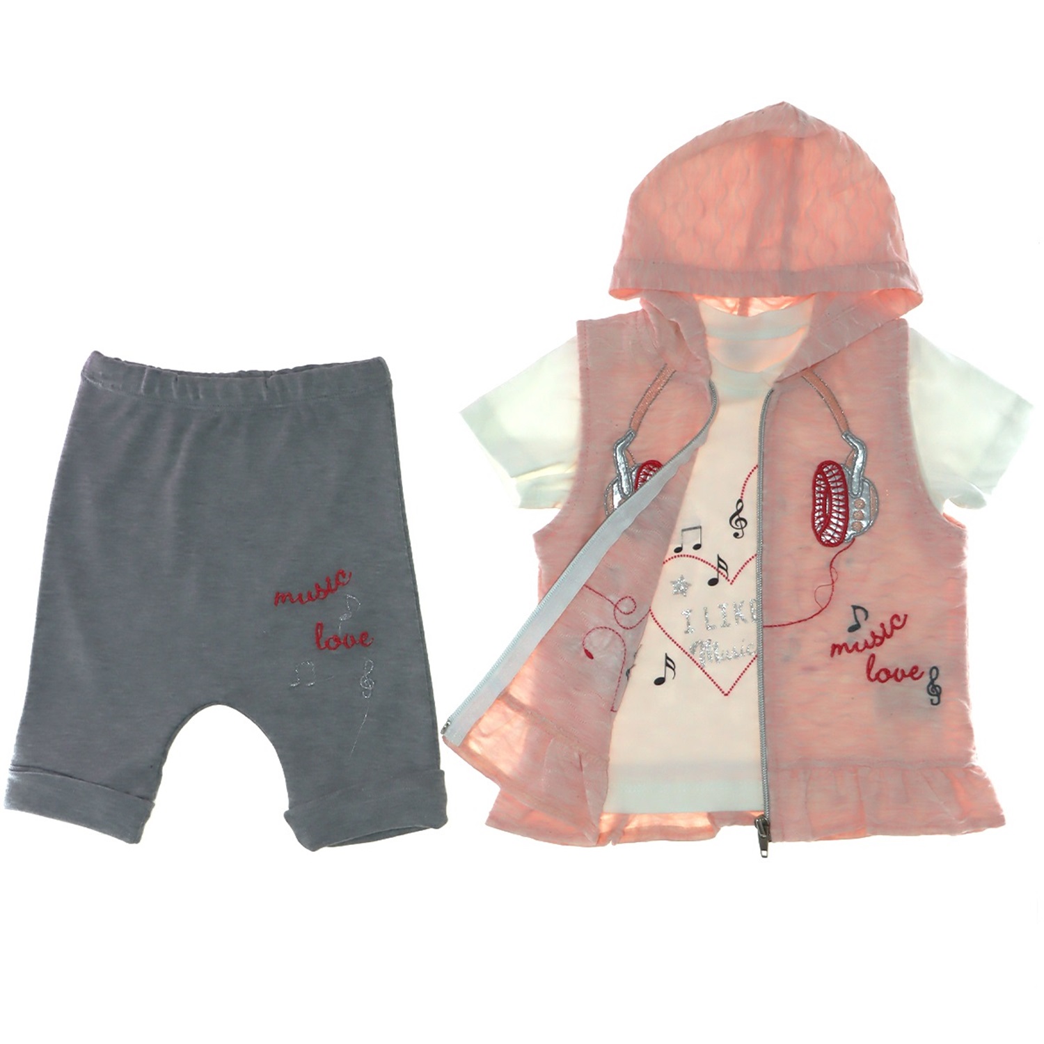 1937 Kız Music İşlemeli Yelekli 3 Lü Takım 6-18 Ay