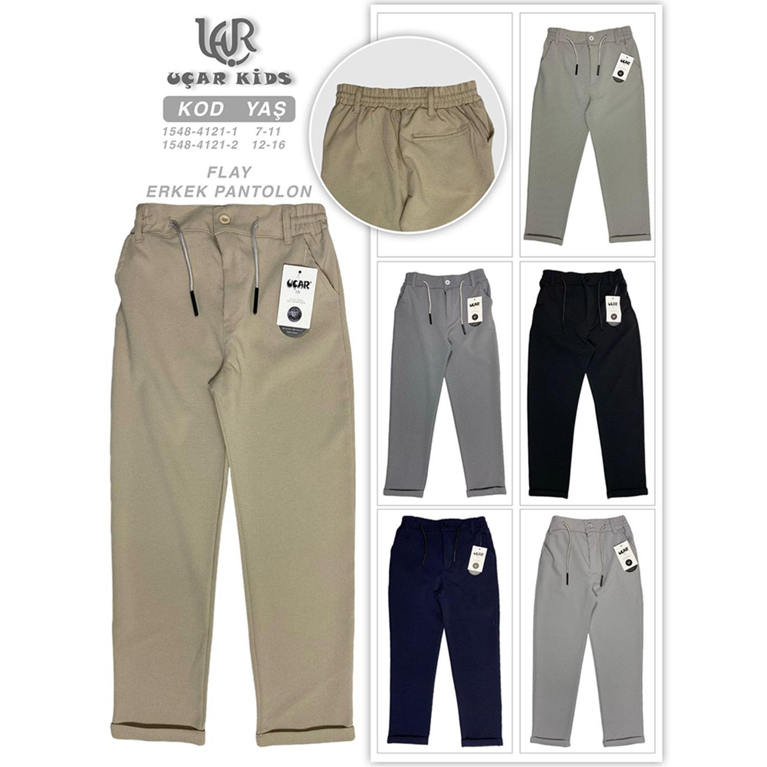 Uçar 1548-1 Erkek Çocuk Arka Cepli Uzun Duble Paça Flay Pantolon 7-11 Yaş