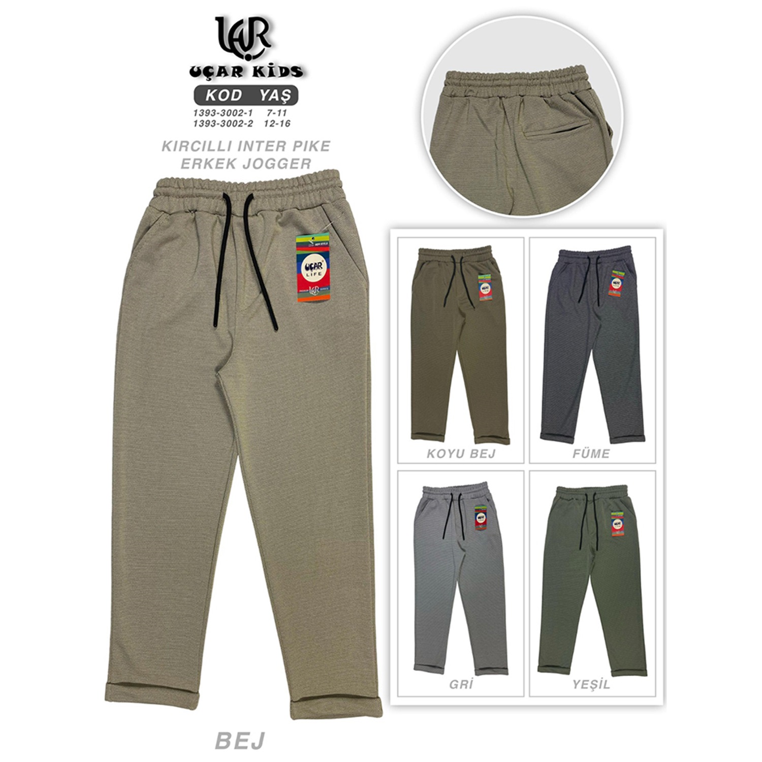 Uçar 3002-2 Erkek Çocuk Arka Cepli Duble Paça Kırçıllı İnter Pike Pantolon 12-16 Yaş