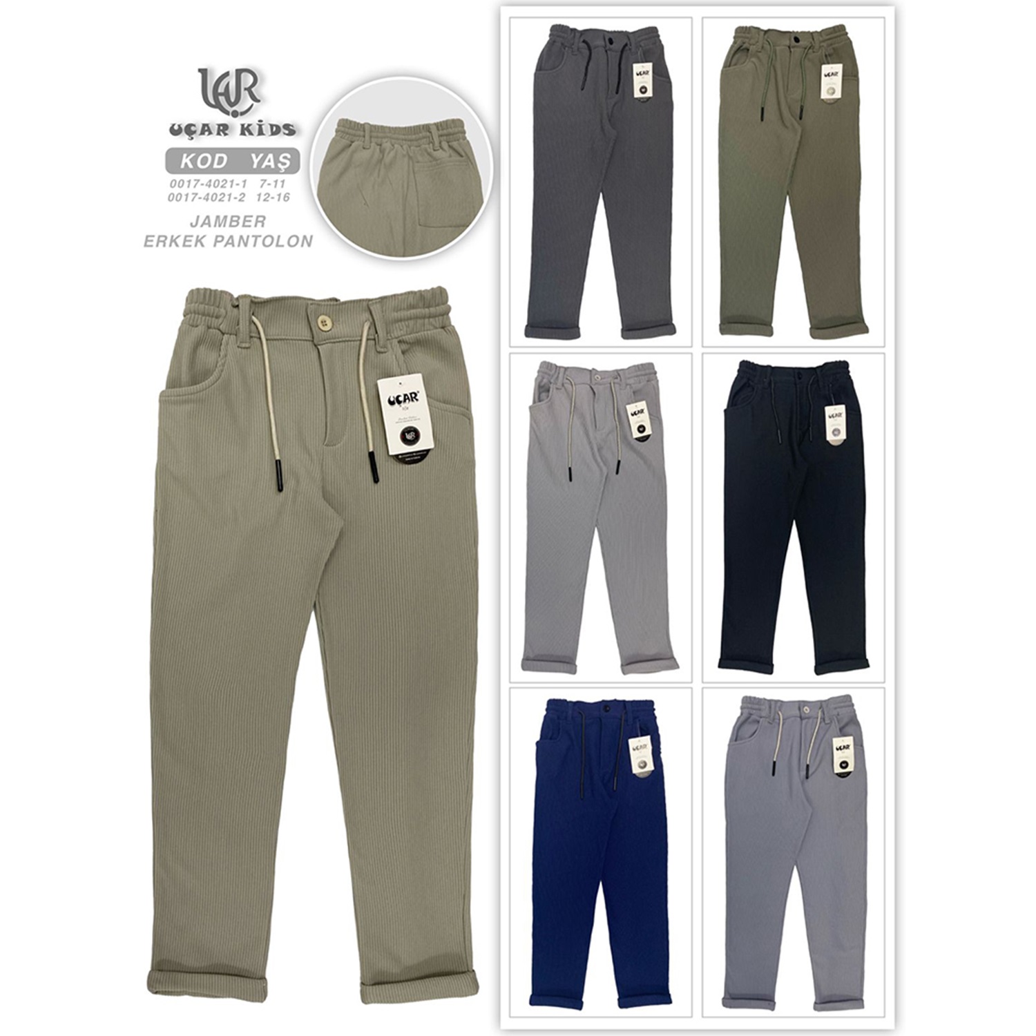 Uçar 4021-1 Erkek Çocuk 3 İP Fitili Jamber Arka Cepli Uzun Dublaj Paça Kot Pantolon 7-11 Yaş