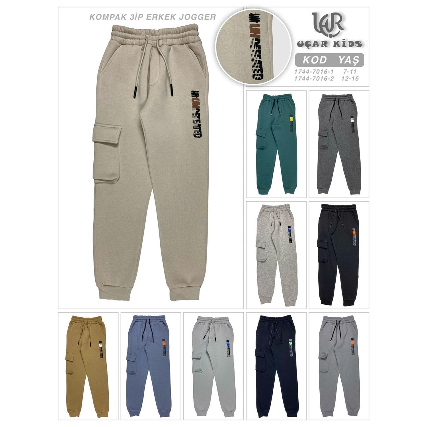 Uçar 7016-2 Erkek Çocuk 3 İP Undefated Baskılı Koruklu Komando Cepli Ribana Paça Eşofman Alt 12-16 Yaş