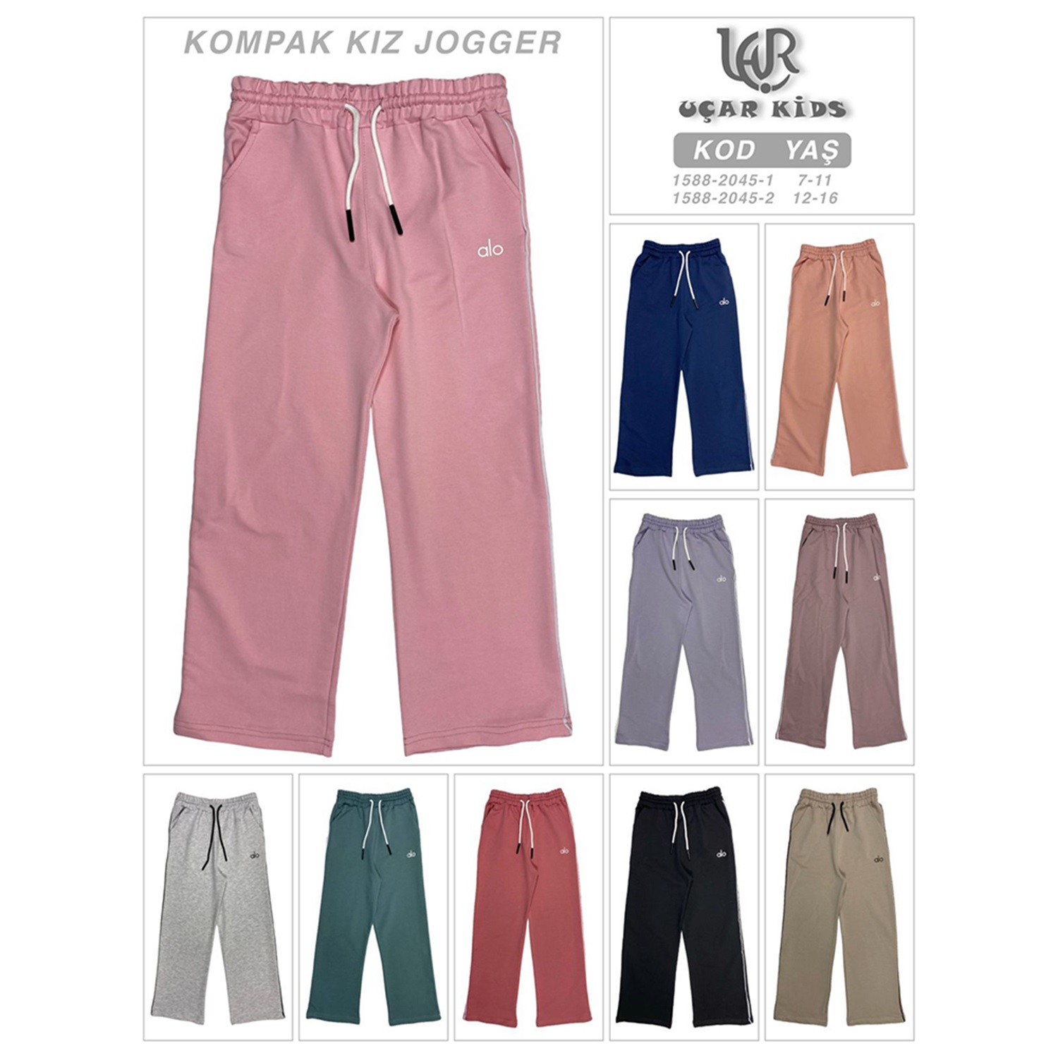 Alo 2045-1 Kız Çocuk Kompak Alo Baskılı Yan Piye Uzun Paça Geniş Eşofman Alt 7-11 Yaş