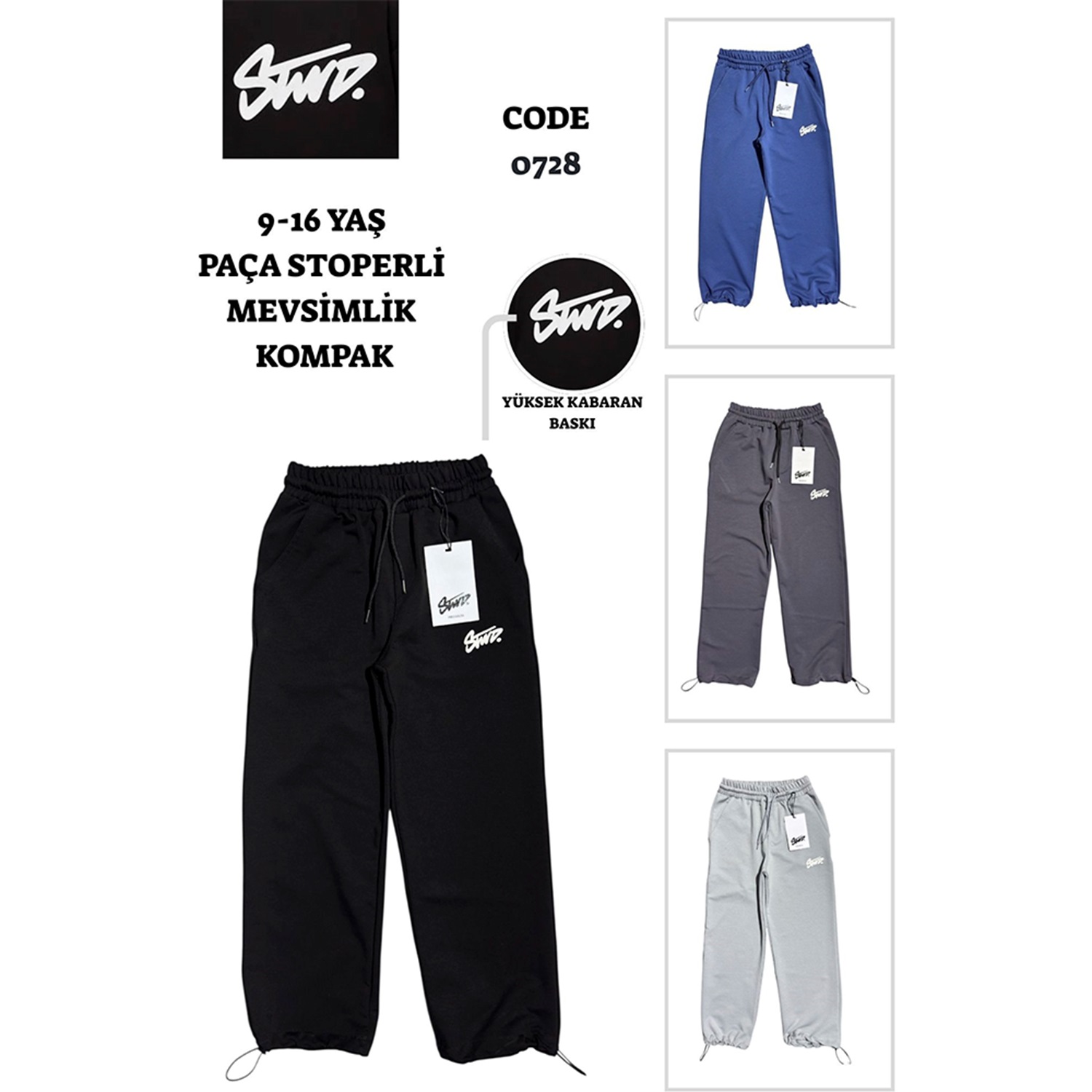 Bala 0746 Erkek Çocuk kompak Penye Swd Baskılı Stoper Paça Eşofman Alt 13-16 Yaş