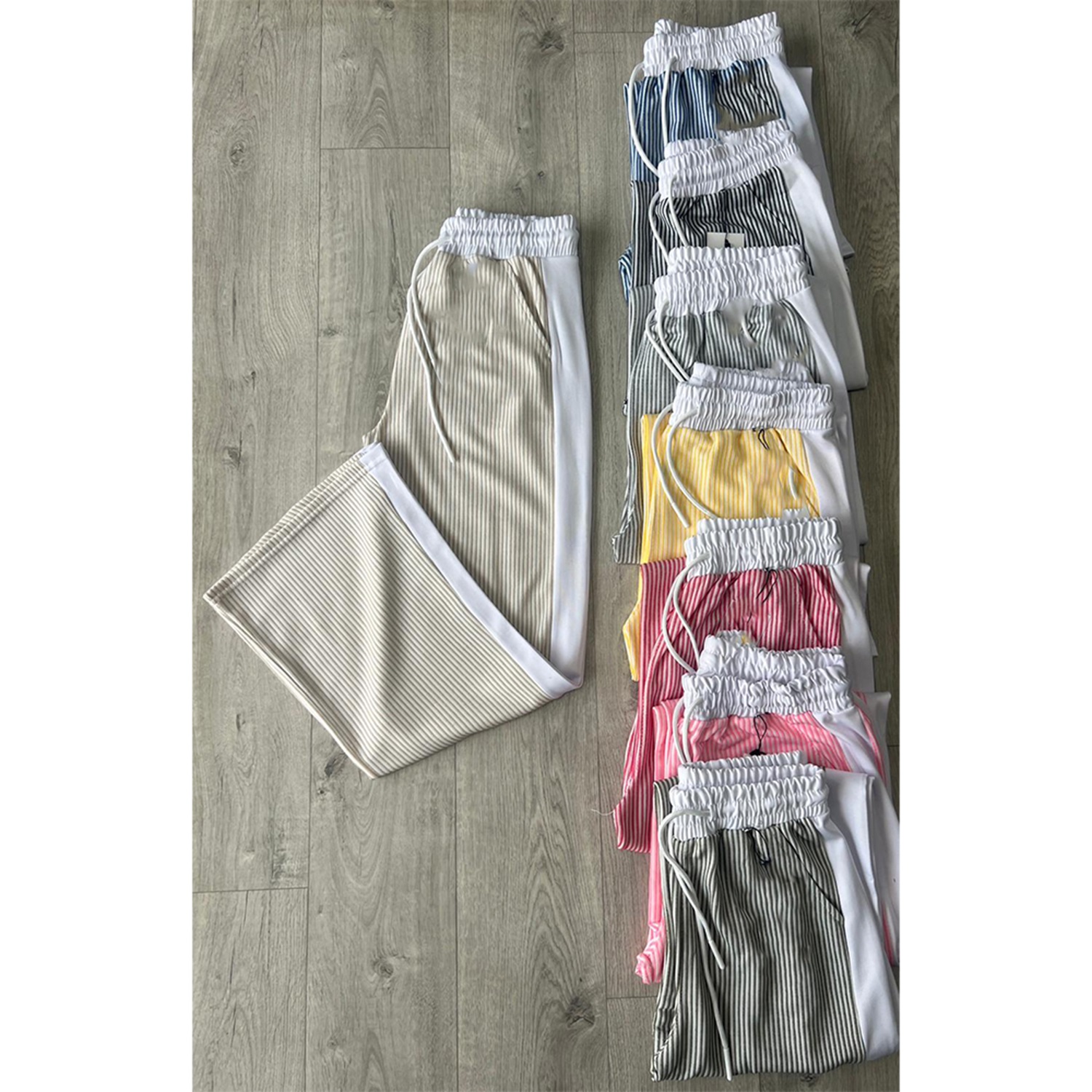 Cml 1239-3 Kız Çocuk Genç Jakar Çizgili Kemer Boy Garnili Geniş Paça Yan Cepli Eşofman Alt 13-16 Yaş