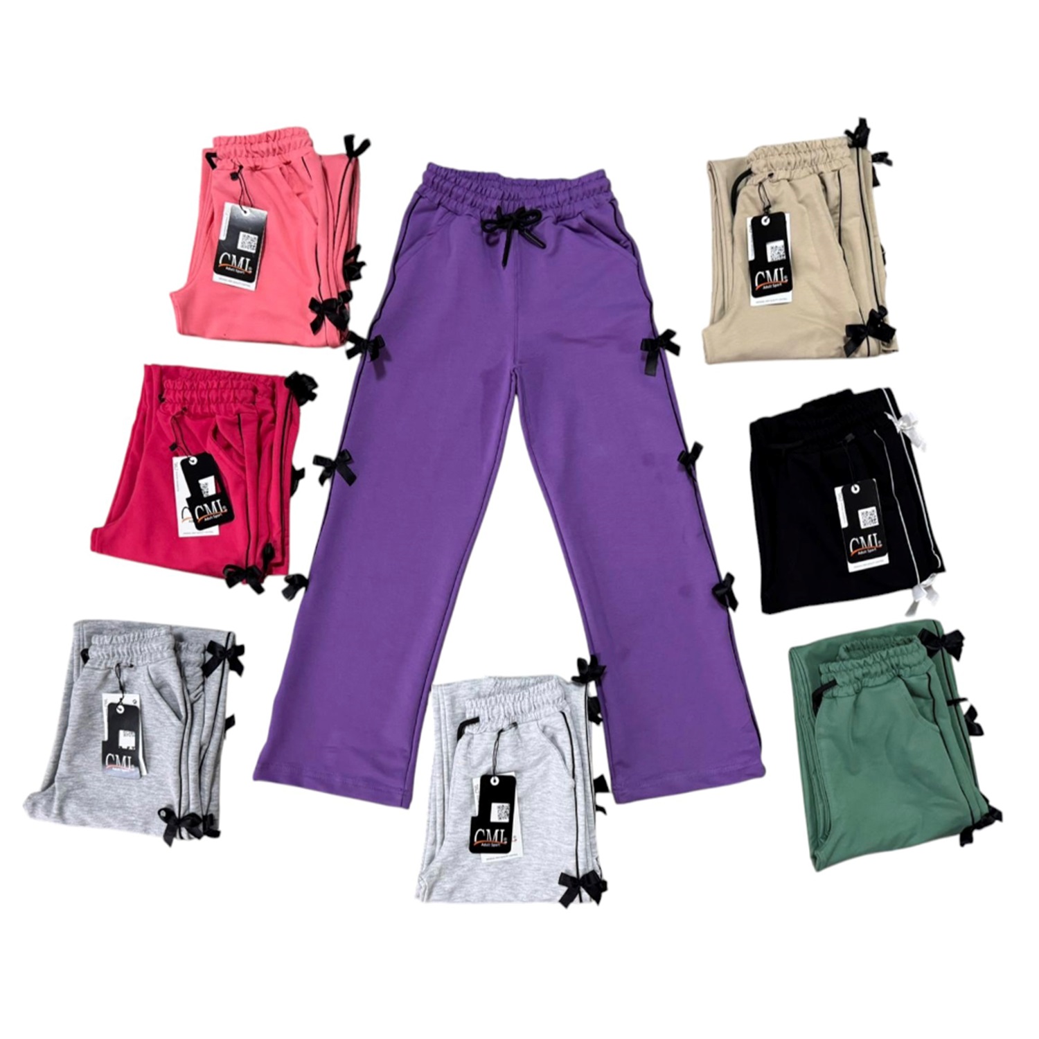 Cml A1266-2 Kız Çocuk Kompak Kıl Biyeli Kurdaleli Yan Cepli Geniş Paça Eşofman Alt 9-12 Yaş