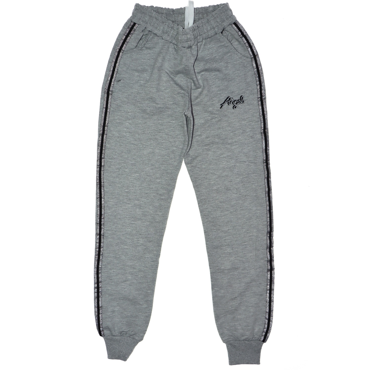 Şeritli Angel Nakışlı Penye Kız Garson Tek Eşofman Alt 9-12 Yaş